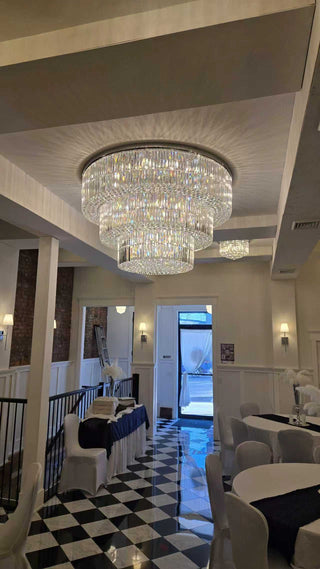 Three Tier Round Ceiling Crystal Chandelier Lighting 59"W 35"H