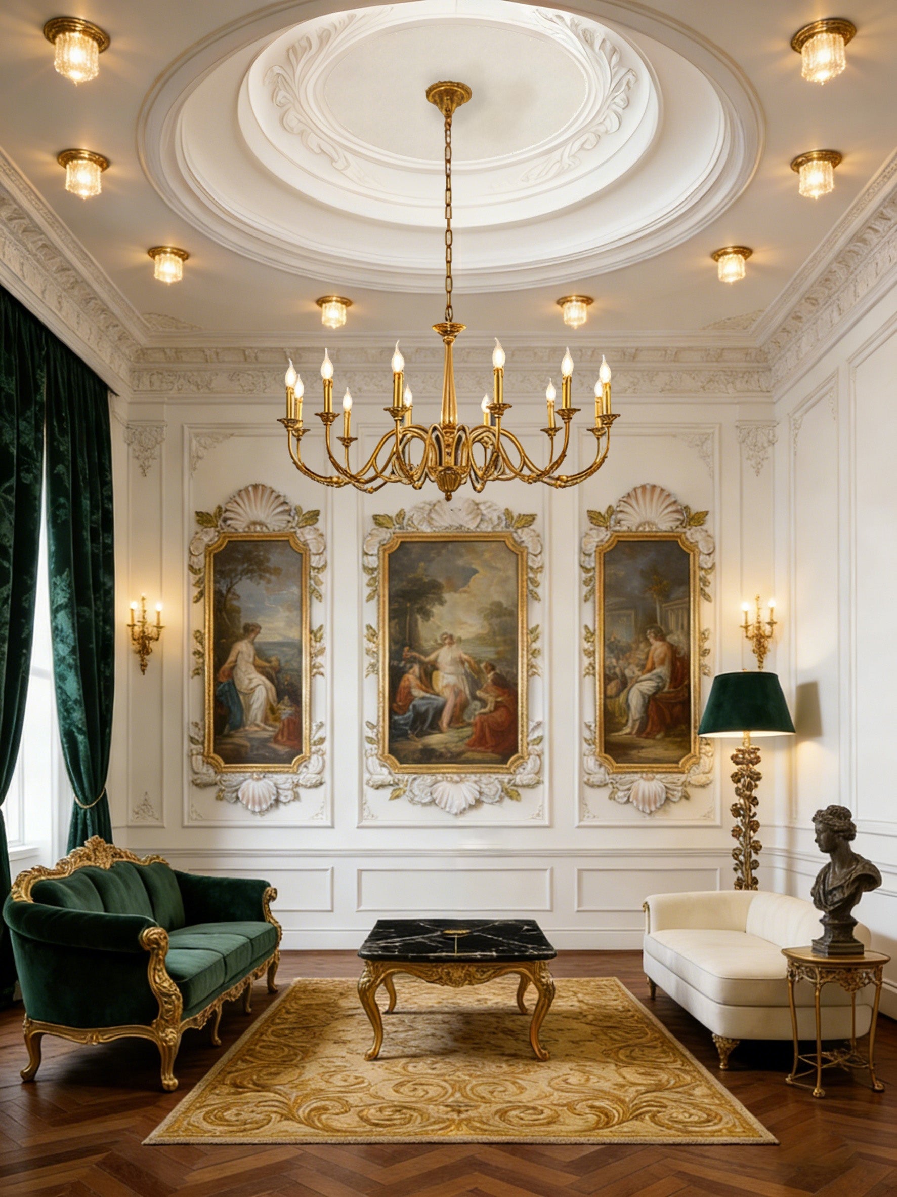 I've specified this fixture for several client projects and it never fails to impress. The Baroque detailing is exquisite and the scale is perfect for high ceilings. The 12 lights provide ample illumination while maintaining a warm, inviting ambiance. Professional installation is recommended due to the weight, but the result is pure magic.