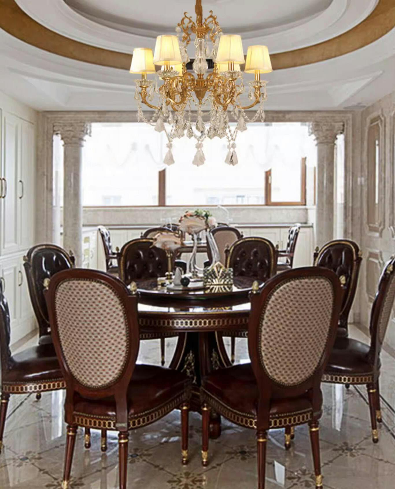 28X28 Inch 6 Lights Candle Style Antique Brass and Crystal Chandelier