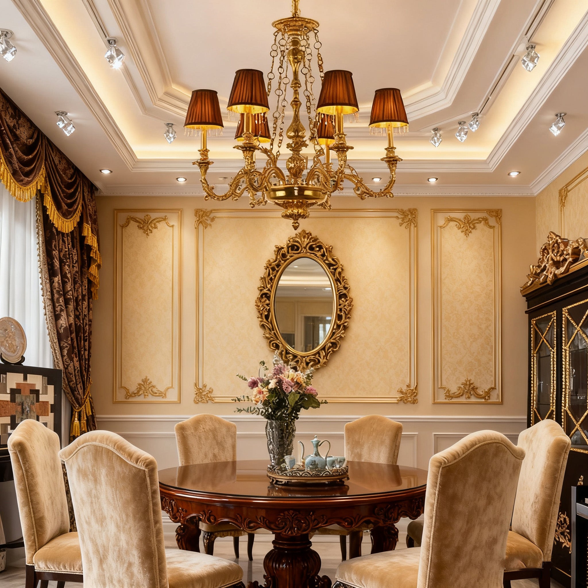 This chandelier has completely transformed the dining atmosphere in our restaurant! The 30x30-inch dimensions look perfectly balanced above our main dining area. The six lampshades create warm, comfortable lighting that envelops each table in a cozy ambiance. The antique brass frame blends seamlessly with our vintage decor, and the Baroque-style intricate details leave a lasting impression on guests. Although we needed to adjust the hanging height during installation for optimal effect, seeing the final outcome made all preparations worthwhile. This fixture now not only provides ideal illumination but has become our restaurant's signature decoration.