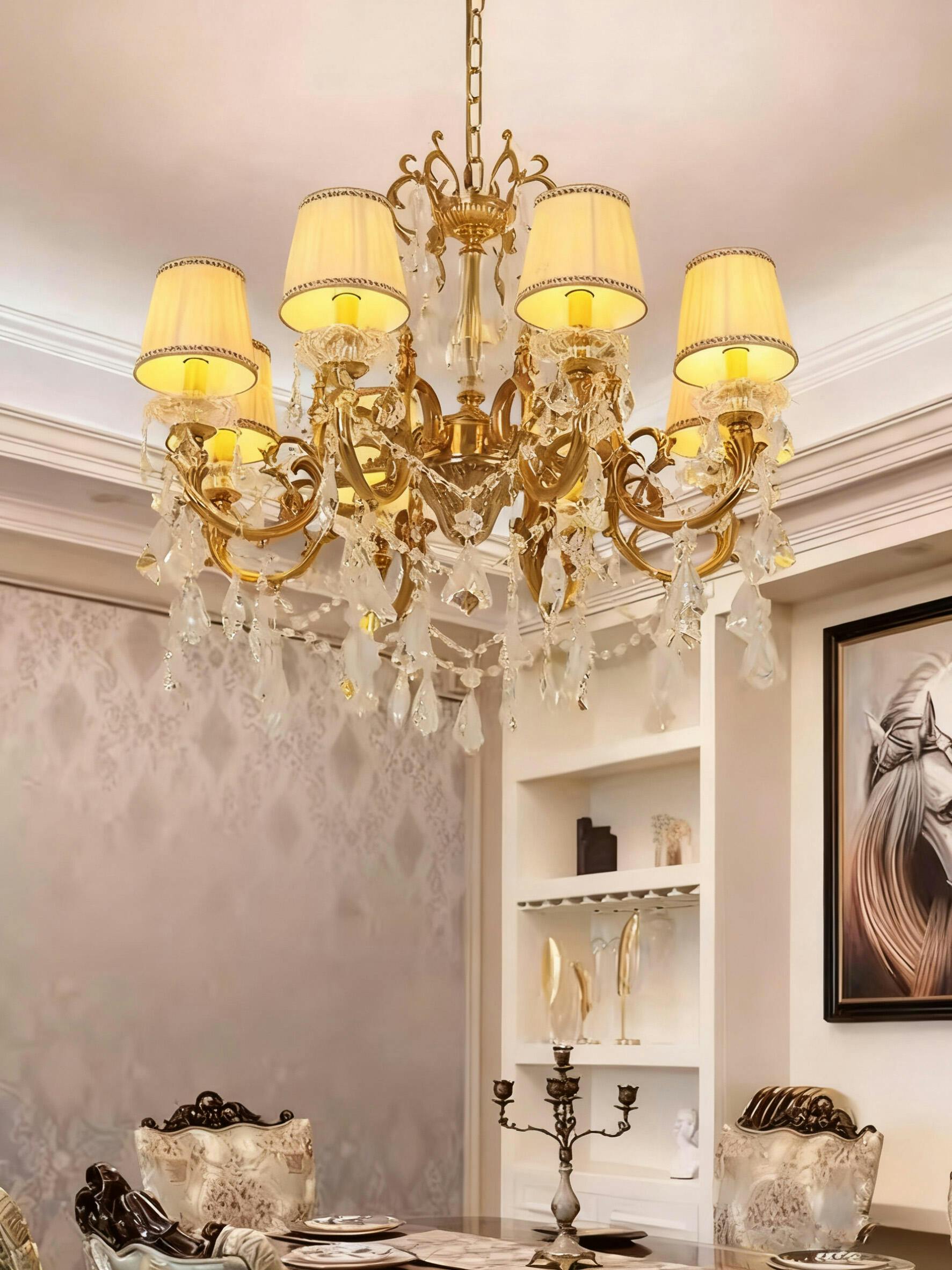 Choosing this lamp for vintage-style decoration is so right! The antique brass carvings match my solid wood furniture perfectly, and the crystal reflection instantly gives the living room the "vibe of an old mansion"