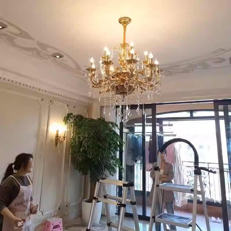 The 31'' wide, 31'' high brass and crystal chandelier exudes timeless elegance. With 8 lights, it illuminates any space with a warm glow. This versatile chandelier lighting is suitable for the bedroom, dining room, or living room, adding a touch of sophistication to any setting. Its combination of brass and crystal creates a captivating interplay of light and luxury, making it a stunning focal point in any room.