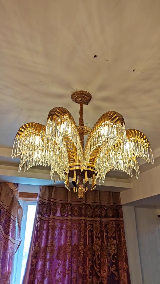 Our living room is in retro industrial style. I was worried that the gorgeousness of this chandelier would be out of place, but it turned out to be the finishing touch after installation! The 33-inch width adds delicacy to the exposed concrete walls. The aged texture of brass echoes the metal furniture, and the crystal pendants sparkle like broken diamonds under cold light. The most surprising thing is the quality — it's much thicker than I imagined. The crystal cut surfaces are particularly neat, and the light has super rich layers when passing through. The customer service gave installation precautions in advance, and the logistics were not delayed. When delivering, anti-collision foam was also stuffed in the box. Now every time I turn on the light, the living room has both the roughness of industrial style and the gorgeousness of crystals. The quality, customer service, and logistics are all reassuring. I can't help but praise it just after installation~