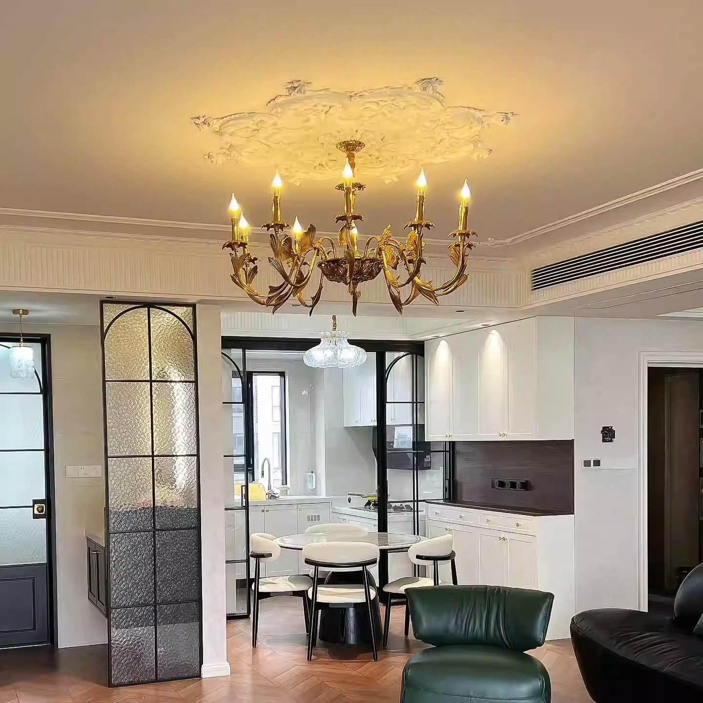This chandelier directly doubles the "dining ritual sense"!the light has the same old-school luxurious soul as the dishes