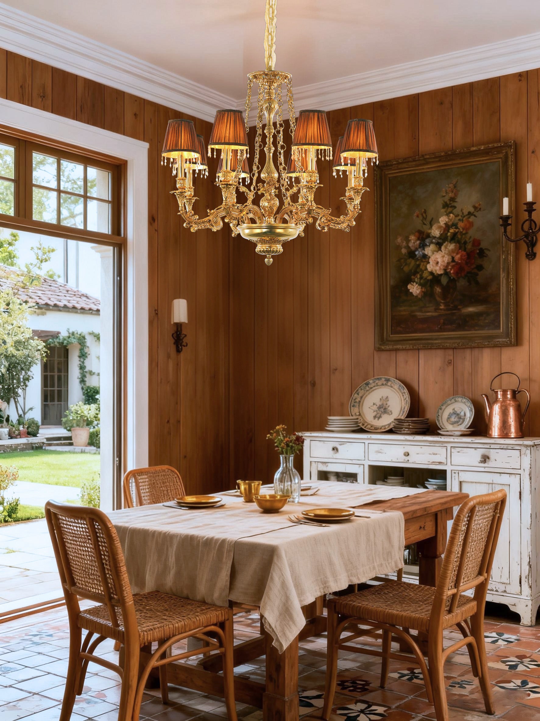 Our 8-person solid wood long dining table finally has a main lamp that "matches its aura"!wide Baroque brass chandelier was installed, the dining room instantly felt like a "private banquet hall in a century-old castle". The pure brass carved arms are like artworks, with every curve showing craftsmanship;