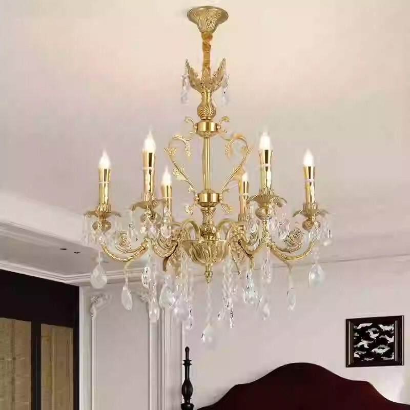 35X33 Inch 8 Lights Small Traditional Brass and Crystal Chandelier for Master Bedroom