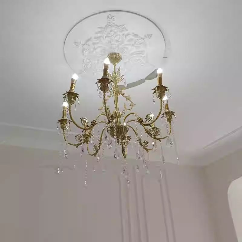 Our 30㎡ living room has a retro mix-and-match style, and this chandelier has become the "soul core" of the space! The 35×33-inch size hangs in the center of the living room. The warm gold of the brass complements the retro leather sofa and solid wood side table perfectly. The warm light of the 8 lamps shines through the crystals, illuminating the living room brightly and with layers. The light spots from the hanging crystals dance on the walls and floor. When we curl up on the sofa to watch TV at night, wrapped in warm light, there's a particularly elegant feeling like in old movies. Friends who come to visit all praise, "This lamp in your living room is wonderfully chosen — retro without being dull, just looking at it is very relaxing." What touches us most is the detail: the crystals are cut evenly, the curves of the brass lamp arms are smooth, and they still look brand new after half a year of installation. Now this lamp is the "visual anchor" of the living room, making the retro texture of the entire space stand out.