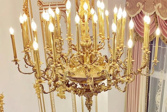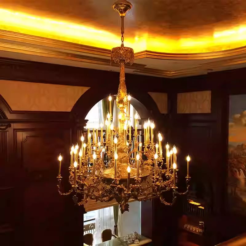 In the 8-meter-high main living room of our family villa, we searched for nearly a decade for a chandelier that "can carry the aura of a century-old mansion". It was not until we met this 41'' wide and 43'' high Baroque French copper chandelier that we felt "the space finally has a soul"