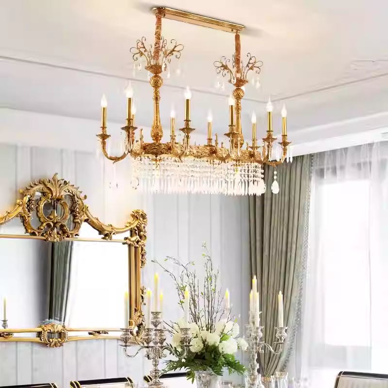 Strongly recommended by interior designer! The linear design of the long antique brass crystal lamp can instantly elongate the spatial vision. The combination of antique brass + crystals maximizes the retro luxury feeling — perfect for large spaces/open areas without hesitation~