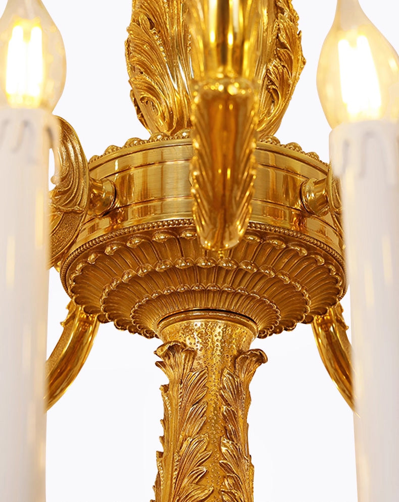 In our 4.3-meter-high living room, which always felt "cozy but lacking luxury", installing this 19th-century French brass chandelier (we chose a custom smaller size to fit) instantly gave it a "mini-mansion" aura! Though smaller than the villa version, the 59×65-inch proportions fit perfectly in our home. When the warm brass light shines, the beige wall covering looks gilded, and the hand-carved details are especially exquisite up close — even my husband’s watch looks like a luxury exhibit under the lamp. The physical piece matches online images exactly, and the brass’s luster is even softer under evening natural light. Now on weekends, curling up on the sofa with family, when the lamp is on, the living room is both cozy and high-end.