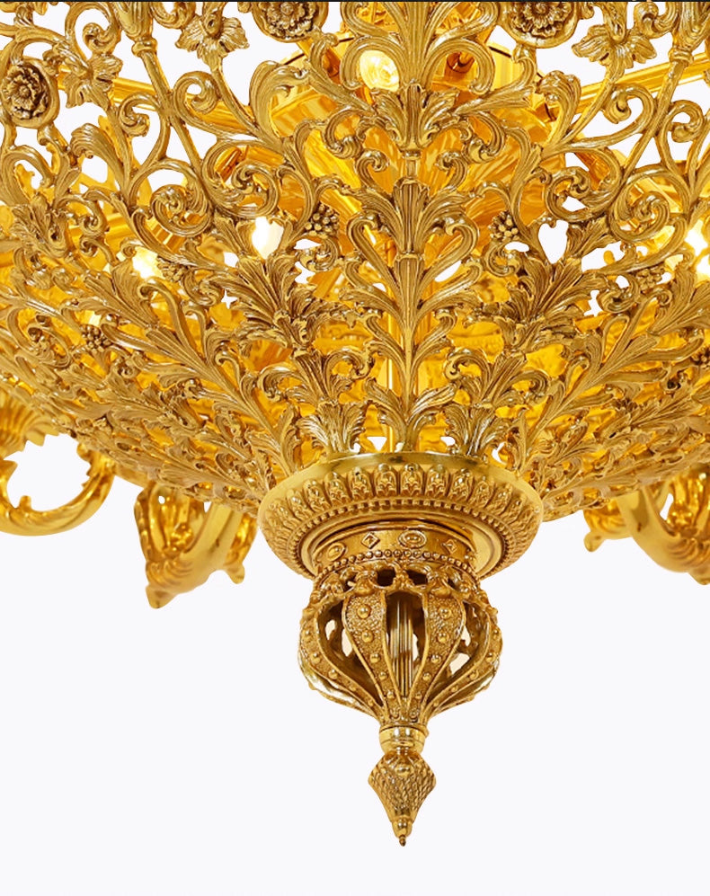 At 59×65 inches, it hangs in the hall’s center like a "solidified golden cloud". When 28 warm LEDs light up, the scroll patterns and floral reliefs of the brass carvings progress layer by layer in the light, perfectly echoing the antique oil paintings and century-old furniture in the hall. Comparing the physical piece to promotional images, the brass — aged by hand — feels more "time-worn" than the pictures, with clear manual traces on every carving. An antique restorer said, "This craftsmanship matches the style of the craftsman who made the 19th-century copper door handles in the estate." Last week at a family gathering, the little granddaughter circled the lamp, shouting, "The patterns on the lamp are like fairy-tale magical vines," and even family elders accustomed to luxury praised, "Finally found a lamp that matches the estate’s history — craftsmanship and texture are impeccable." Now it’s not just lighting, but a "visual carrier" of family stories. Guests always take photos under it, saying, "Standing here, you can touch the weight of time."