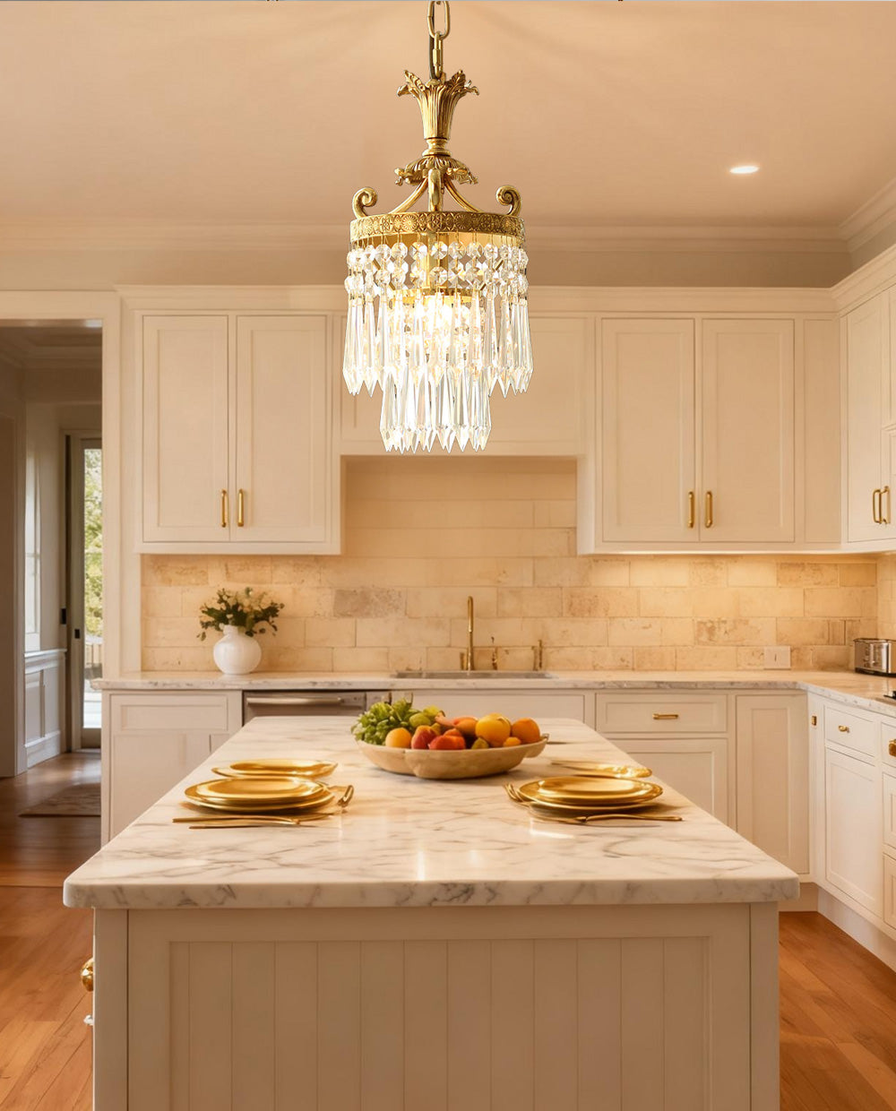 8 Inch Mini Chandelier Antique Brass and Crystal Chandelier for Kitchen