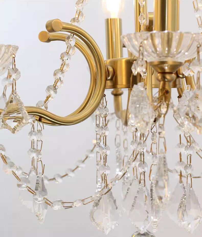 8 Lights Candle Style Brass Chandelier Gold Bedroom Crystal Chandelier