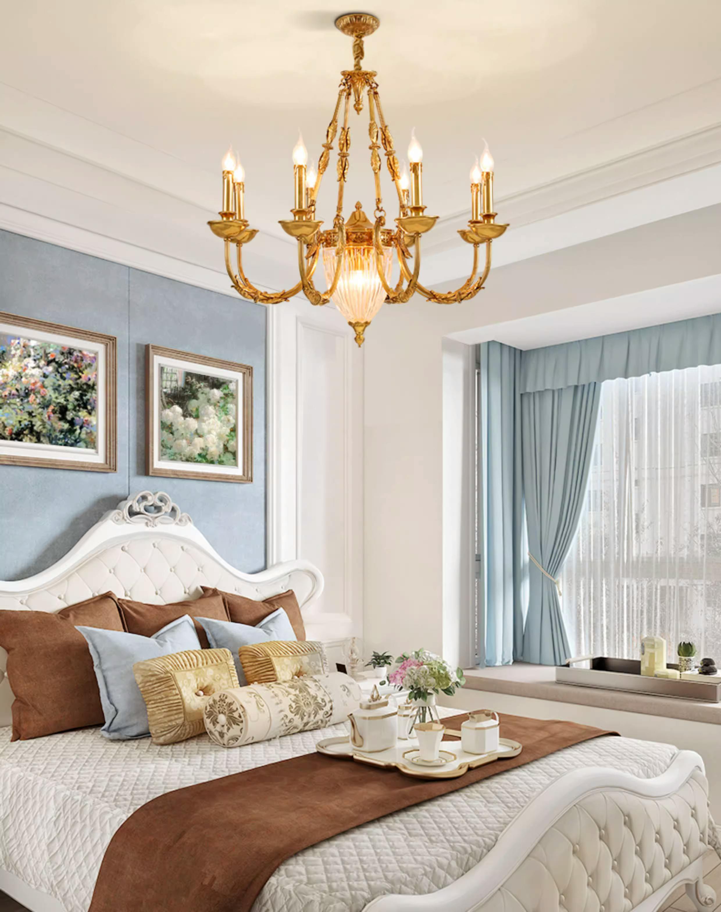 8 Lights Small Empire Style Antique Brass Chandelier Gold Dining Room Chandelier 31X28 Inch
