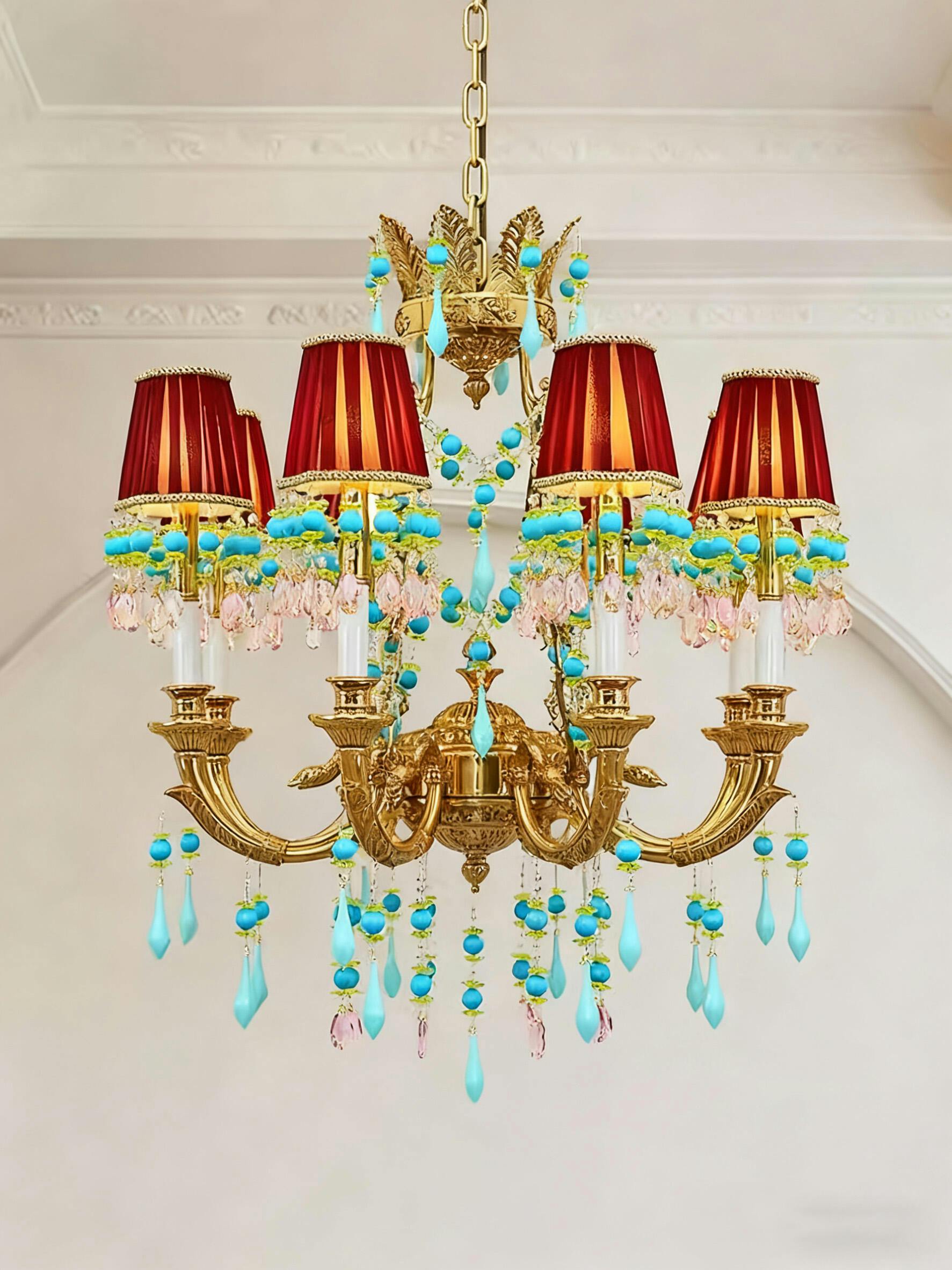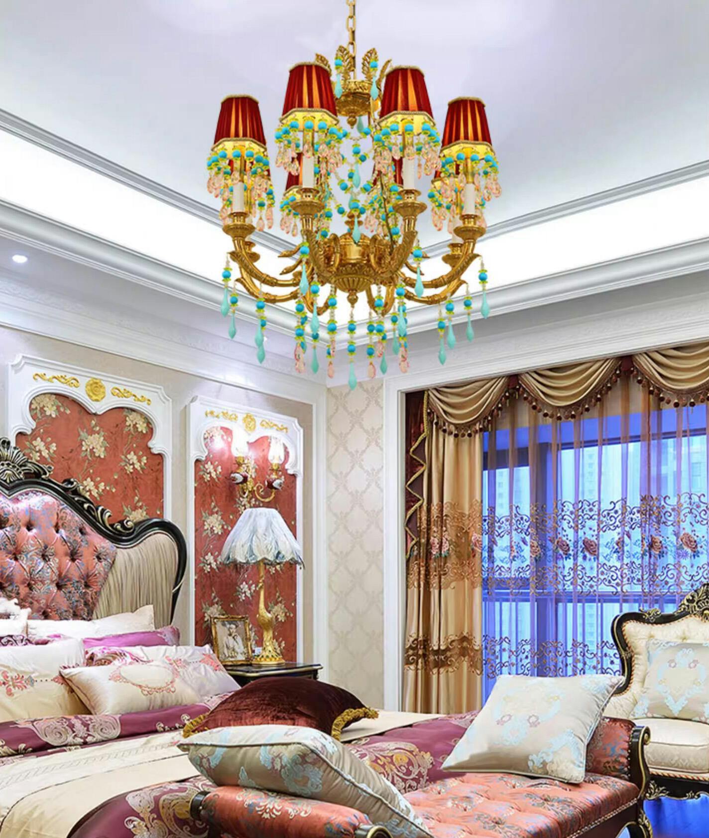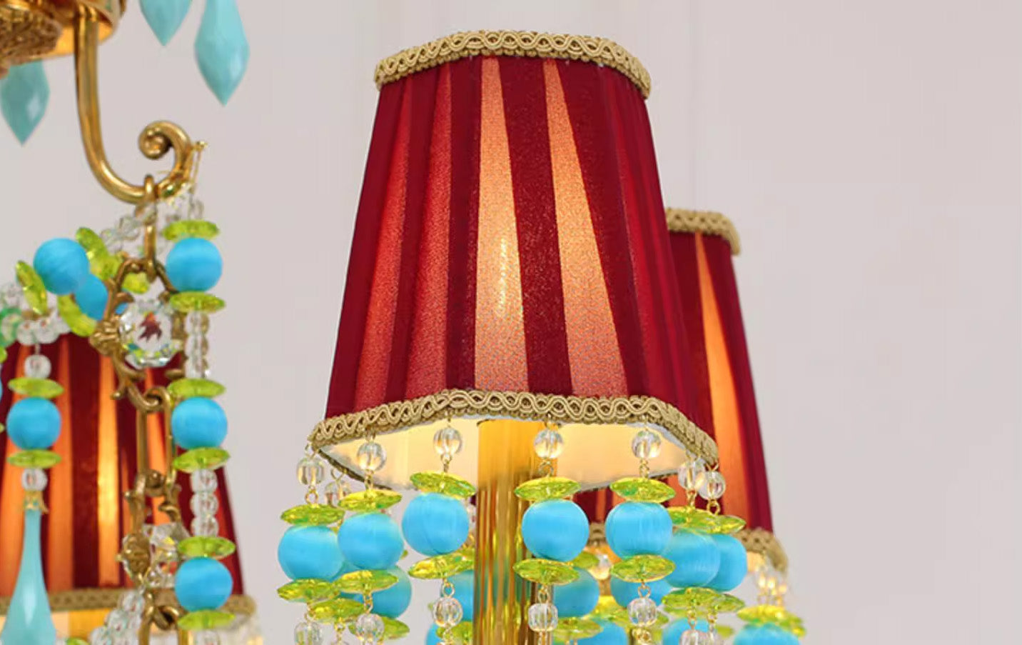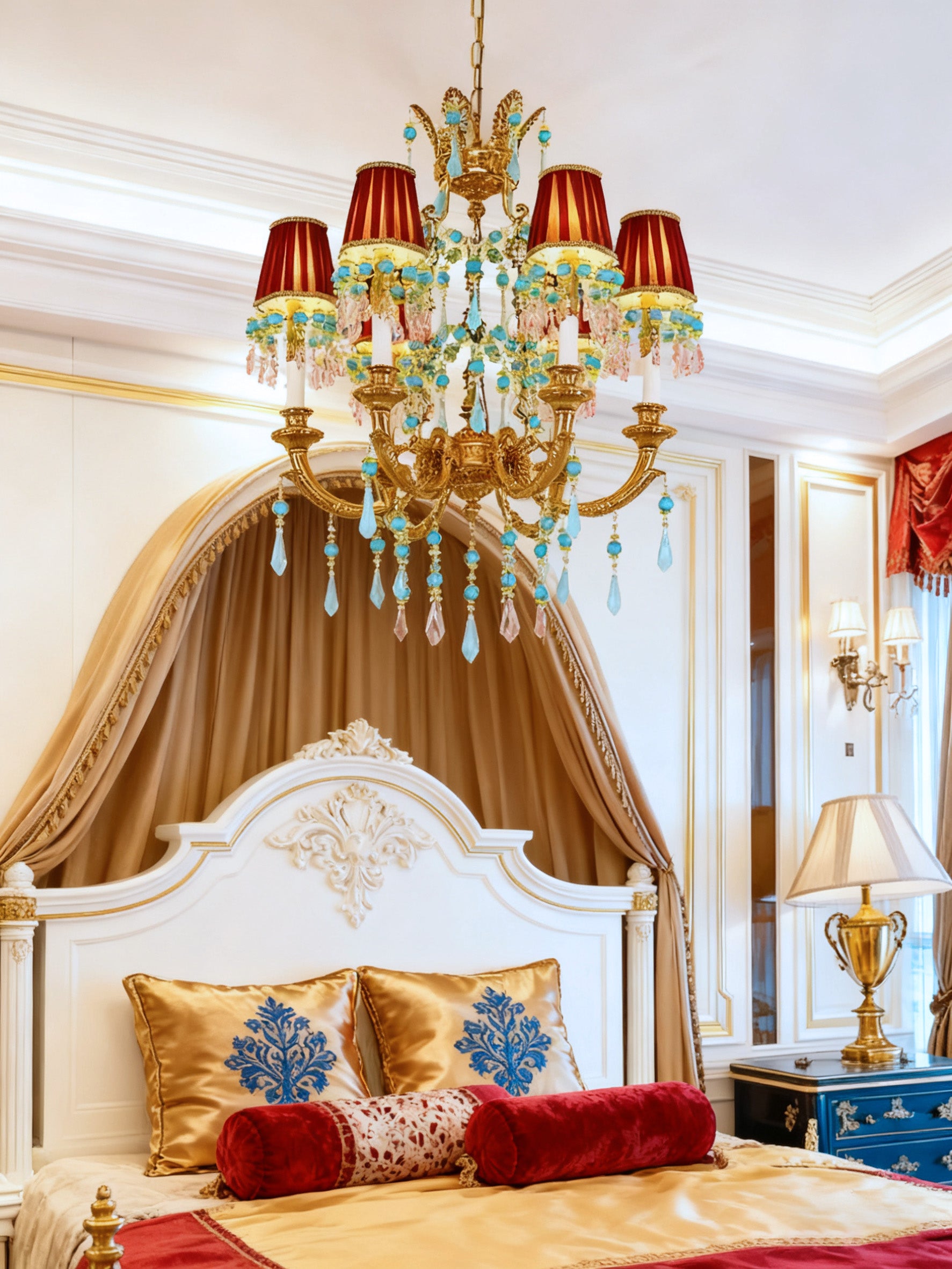 This chandelier matches my bedroom style perfectly! The red velvet, colorful crystals, and gold base echo my French vintage bedding and carved furniture beautifully. When the warm light is on, the whole bedroom feels cozy and romantic—super healing for the pre-sleep atmosphere