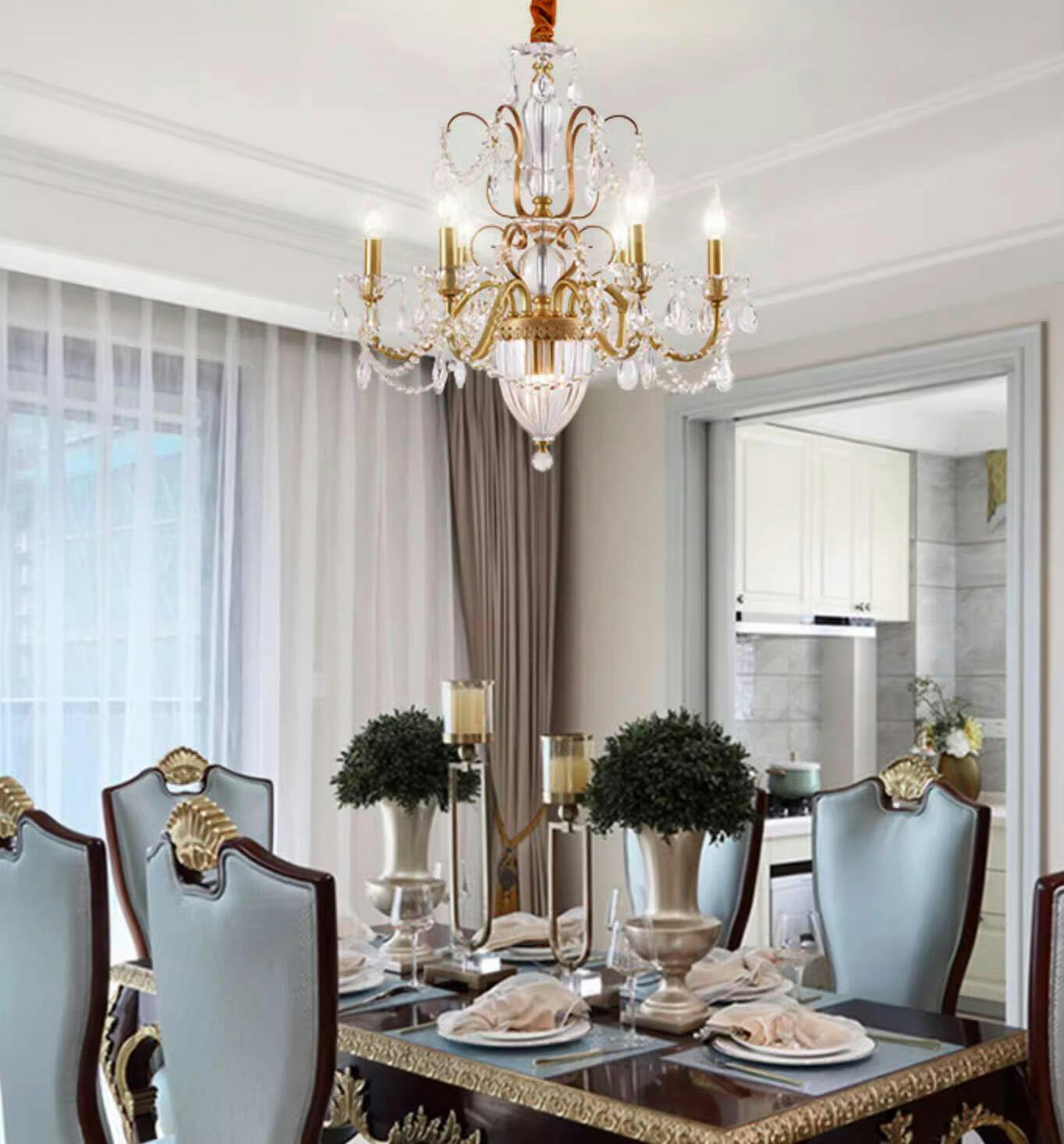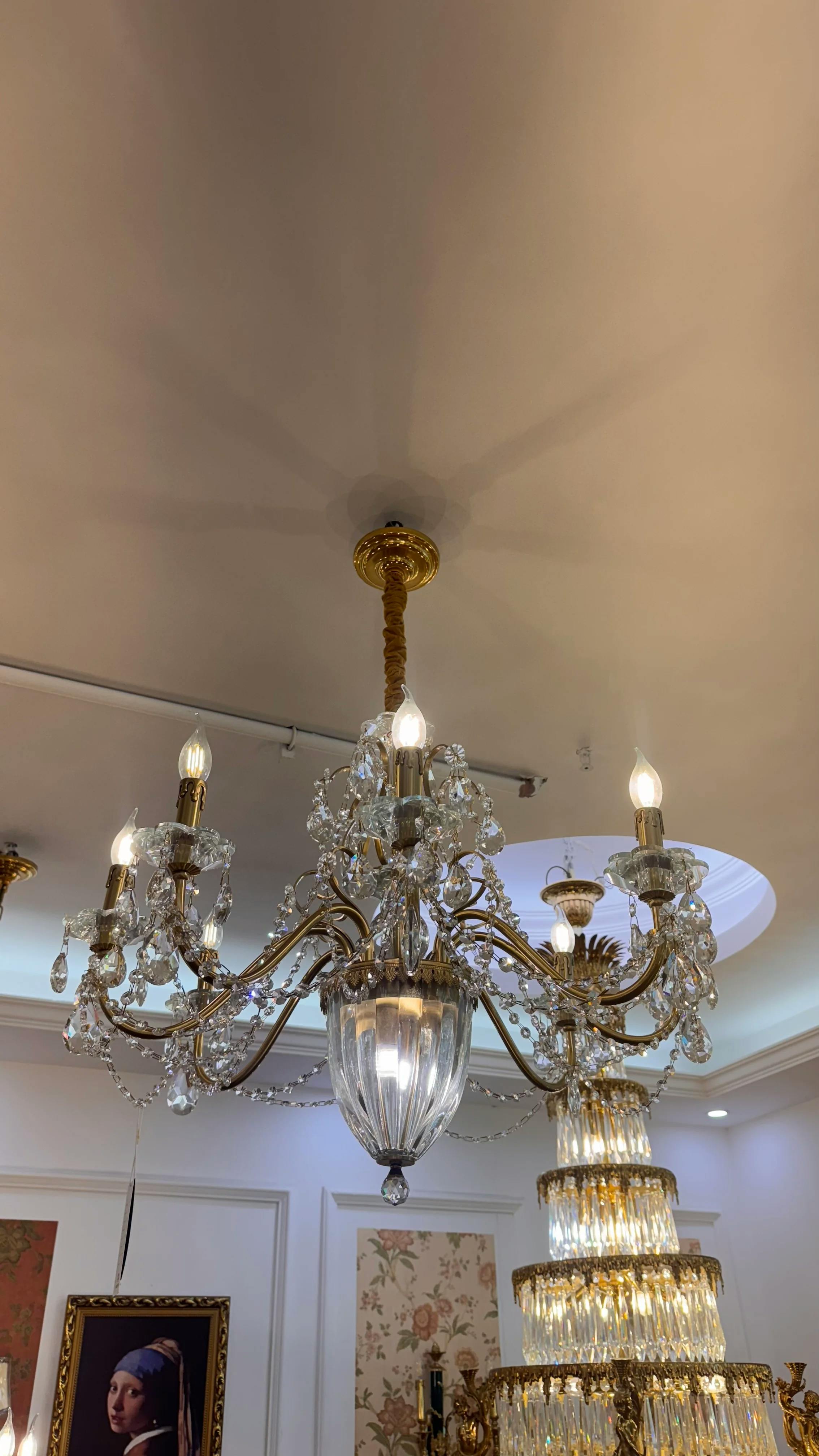 Installing this lamp in my 18㎡ living room is amazing! The 26-inch width holds up perfectly, brass + crystal show class, and the warm light instantly makes the living room cozy and advanced.