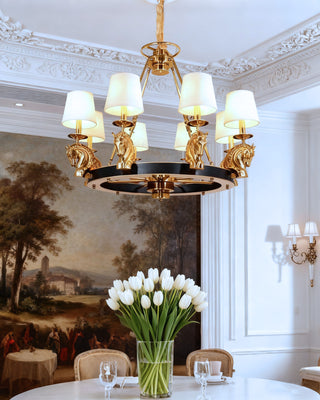 35X29 Inch 8 Lights Rococo Stype Cast Horse Head Antique Copper Chandelier Light