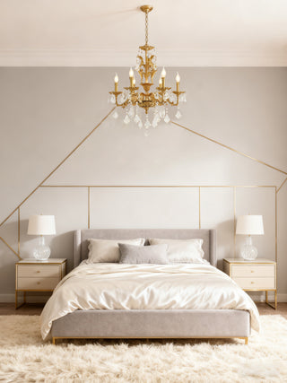 24X31 Inch 6 Lights Small Candle Style Brass and Crystal Chandelier Lighting for Bedroom