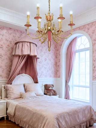 26X23 Inch 6 Lights Rococo Style Antique Copper Chandelier Small Pink Bedroom Chandelier