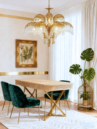 33 Inch Wide 1 Layer Small Brass Palm Tree Gold Crystal Chandelier for Dining Room