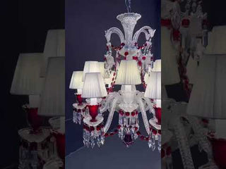 Custom Made Lustre Baccarat 12 Lights Clear & Red Baccarat Crystal Chandelier in Gold