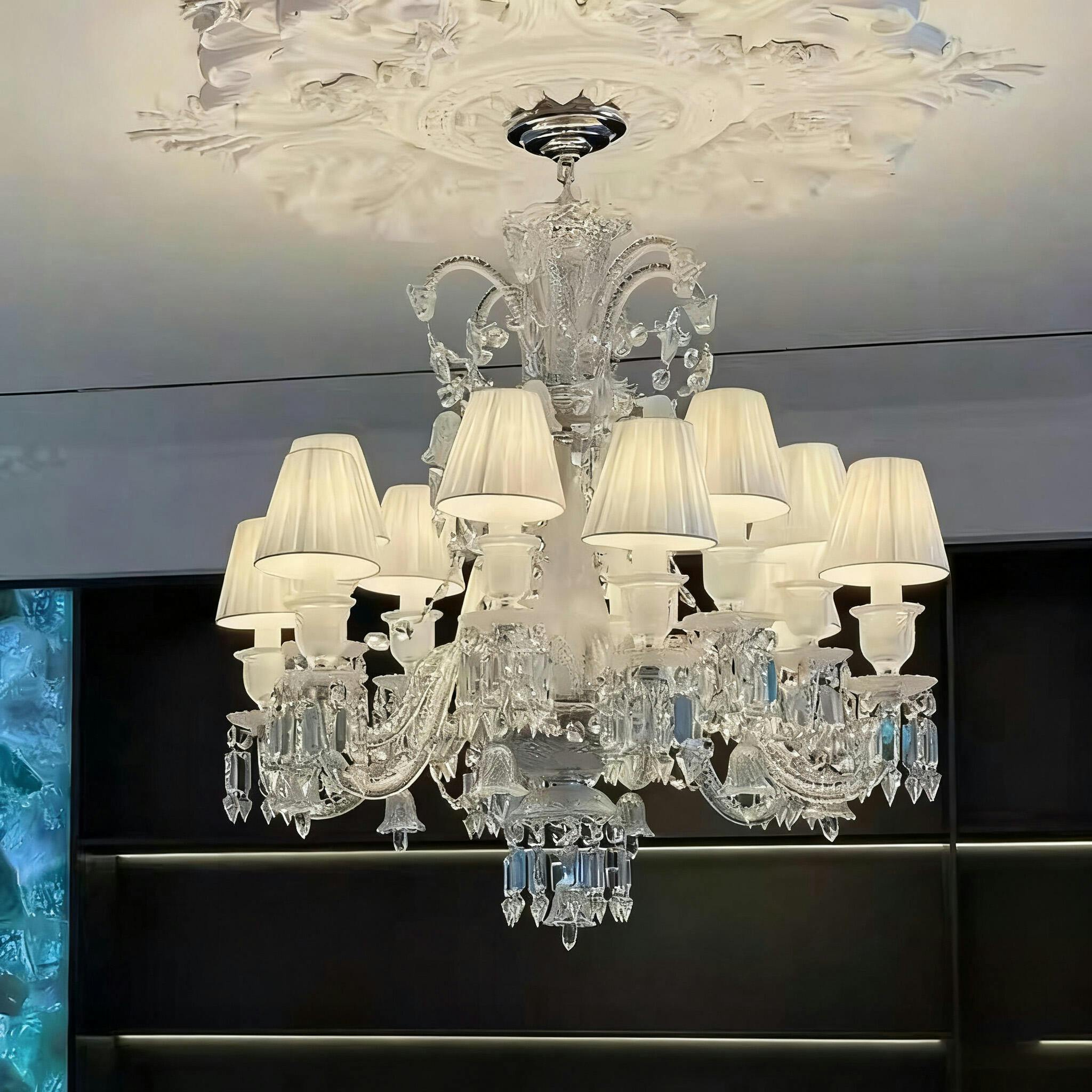 The Replica Clear Zenith Baccarat Chandelier is a stunning baccarat crystal lighting fixture for sale. With 18 lights, lampshades, and clear crystals, it adds elegance to any space. Measuring 102cm in width and 110cm in height, it is suitable for various rooms. The chandelier’s timeless design and exquisite craftsmanship make it a versatile and luxurious addition to any interior style. It provides ample illumination and creates a warm ambiance. Whether for a home or commercial space, this baccarat chandelier is a beautiful and captivating choice.