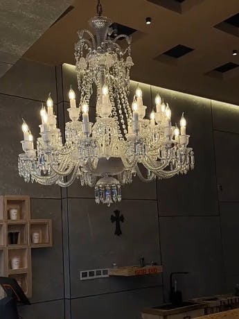 The Baccarat crystal chandelier for sale is a Short 24 Lights Replica Clear Zenith Baccarat Chandelier. With a width of 108cm and a height of 116cm, it features 24 lights and clear crystals. This exquisite chandelier is suitable for various spaces and creates a mesmerizing display of light and shadow. Its timeless design and impeccable craftsmanship make it a luxurious and opulent addition to any room. The chandelier offers both aesthetic appeal and practicality, providing ample illumination for any occasion. Overall, it is a true masterpiece that adds a touch of elegance and luxury to any space.