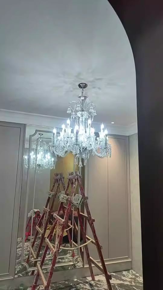The large living room of the top-floor duplex only feels like "home" with this lamp! At night, only turning it on, 8 warm lights filter through crystals, casting lively spots on the double-height ceiling. Lazing on the sofa and binge-watching dramas, I instantly feel "the romance of living on the top floor is worth the price"