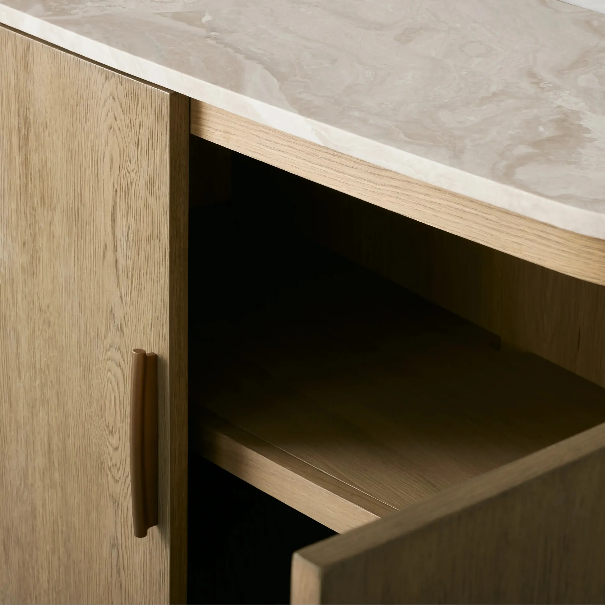 Designed for both daily living and effortless entertaining, the Danny Solid Oak & Marble Sideboard blends refined style with practical storage. Its gently rounded profiles, premium marble top, and rich wood finishes create an enduring piece that feels both modern and timeless.