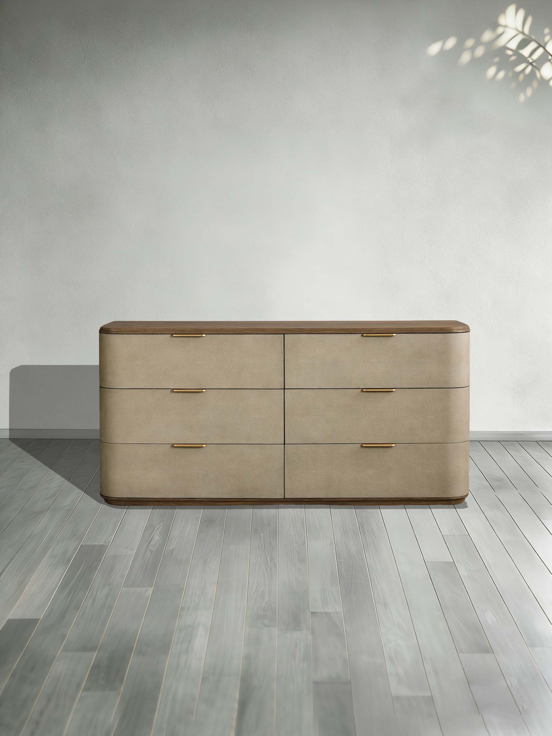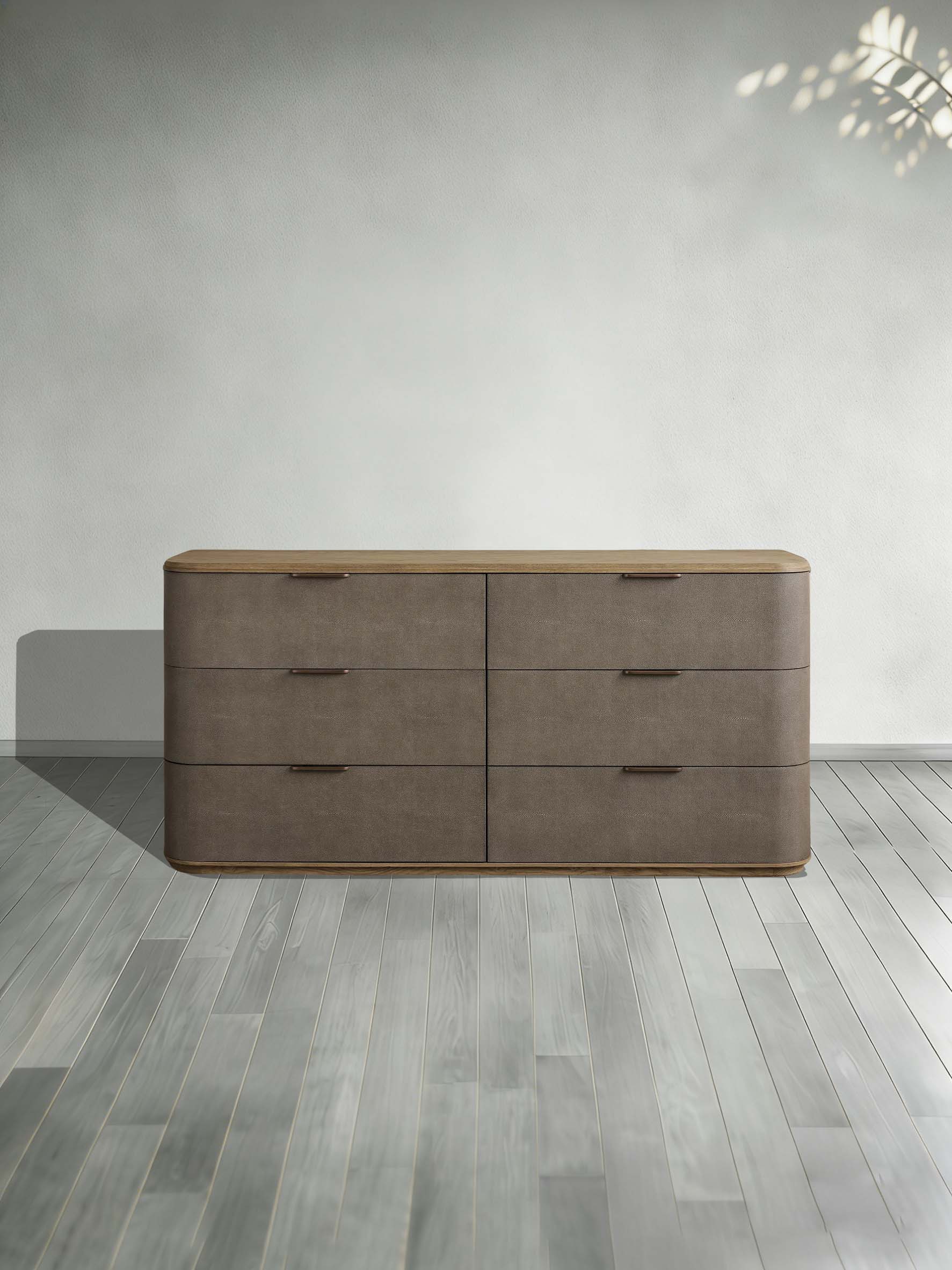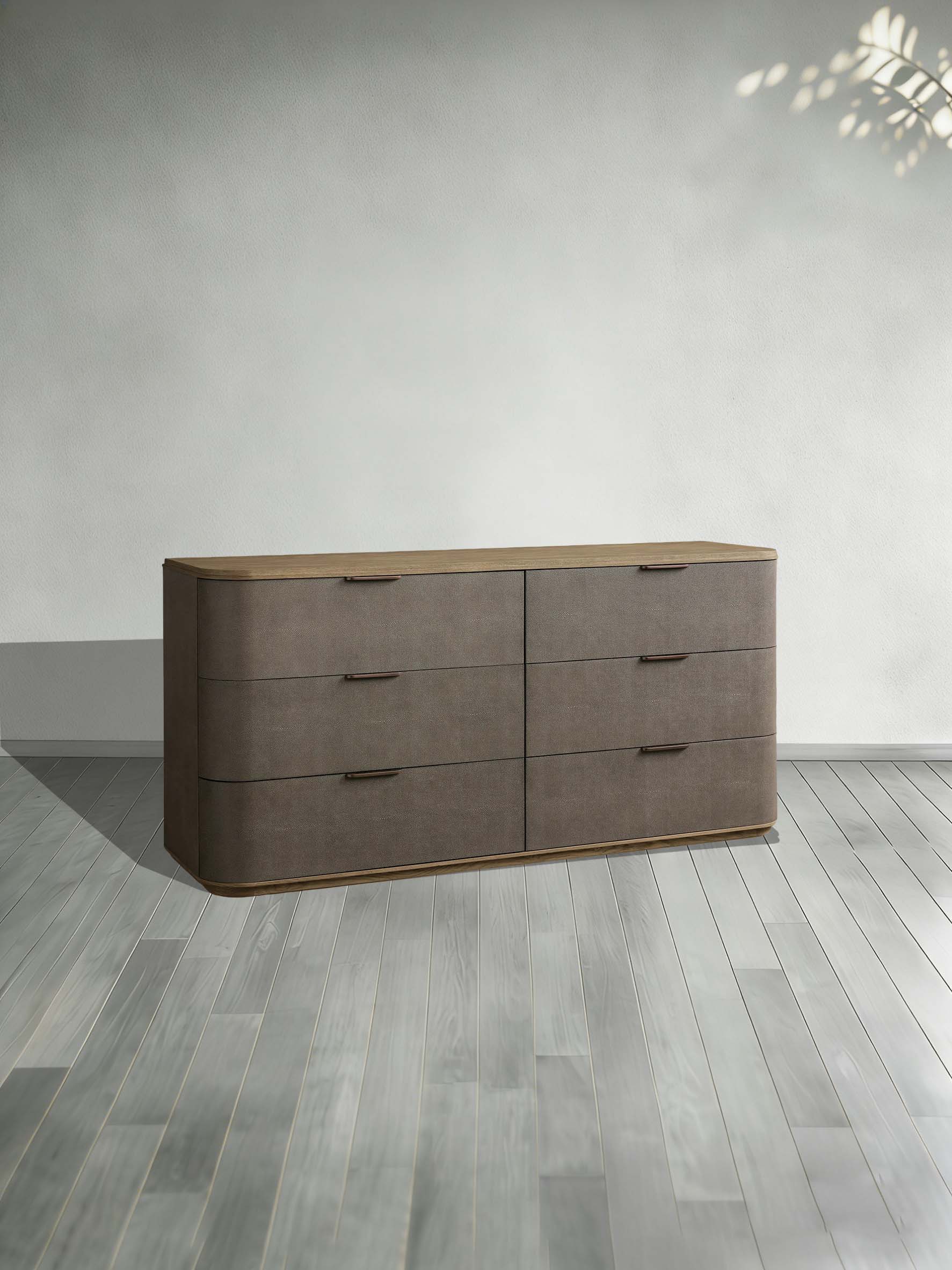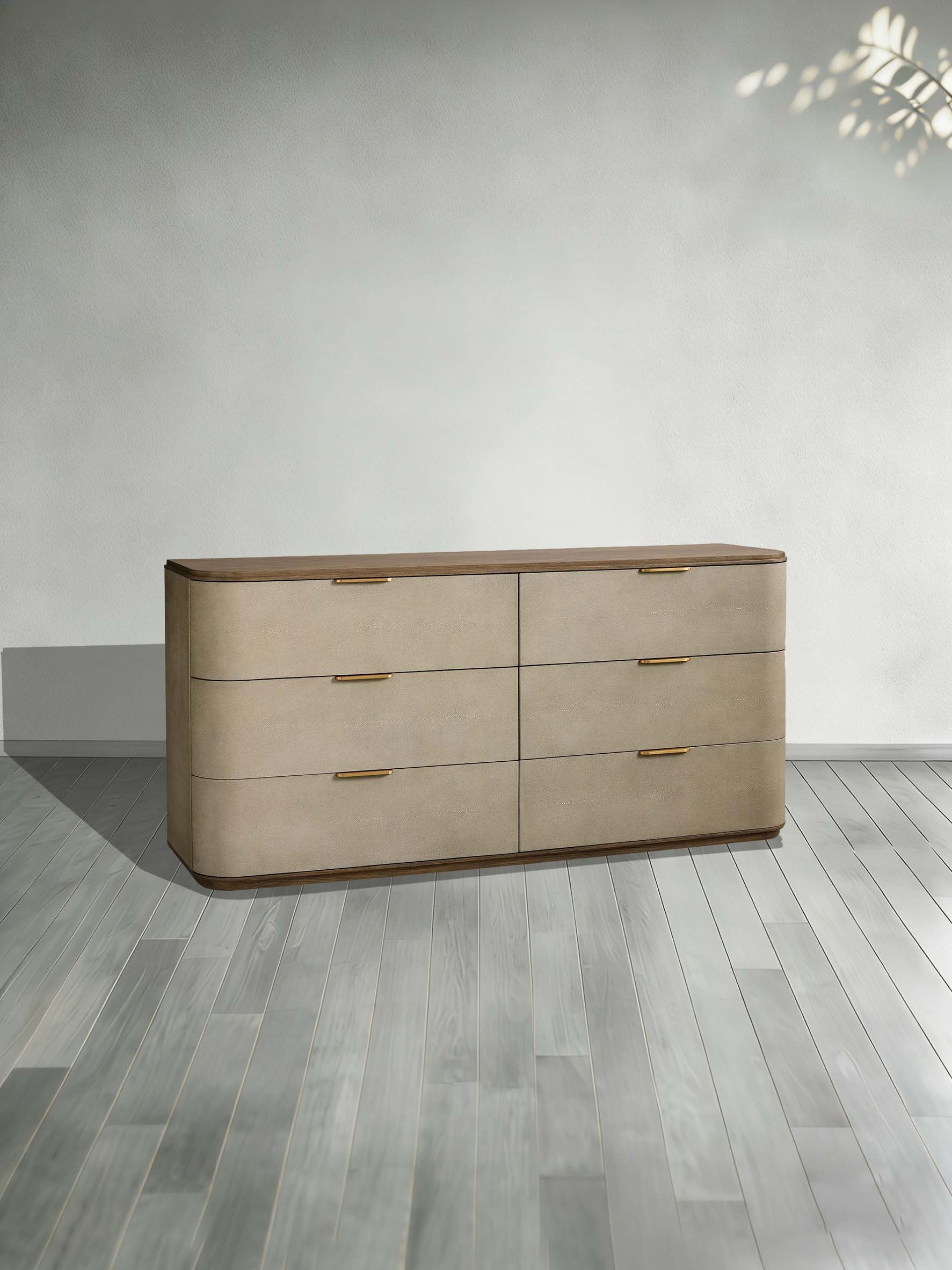 Harrow 6-Drawer Dresser Faux Shagreen Solid Wood Floating Base