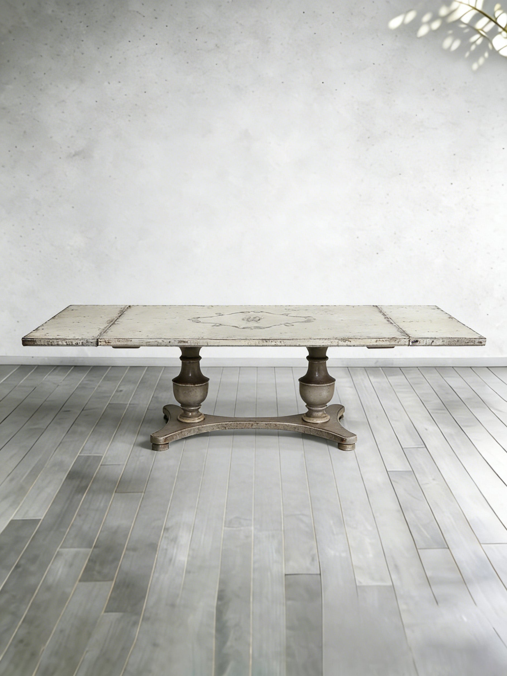 Crafted with hand-painted artistry in Italy, this dining table comes with two detachable leaves, infusing the dining room with rich artistic texture and versatile dining value. The hand-painted tabletop features unique and elegant patterns, a smooth touch, wear resistance, stain resistance and easy cleaning. In its contracted state, it accommodates 6-8 people for daily meals, and with the two leaves installed, it can expand to seat 10-12 people, easily handling family dinners, friend gatherings and other occasions. The base has a sleek and stable design with neat lines that complement the hand-painted texture, and its Italian light luxury style complements European, American, artistic and other home aesthetics, balancing practicality and decorativeness, making it a high-quality dining furniture that showcases taste.