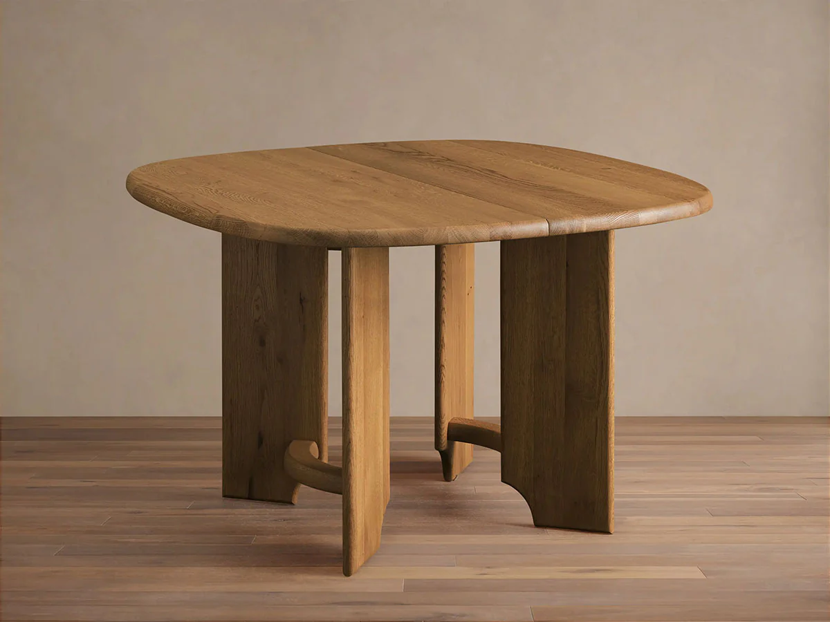Each Jolson table celebrates the natural beauty of oak, where variations in grain patterns and organic features become unique characteristics that enhance the table's distinctive charm and artisanal appeal.