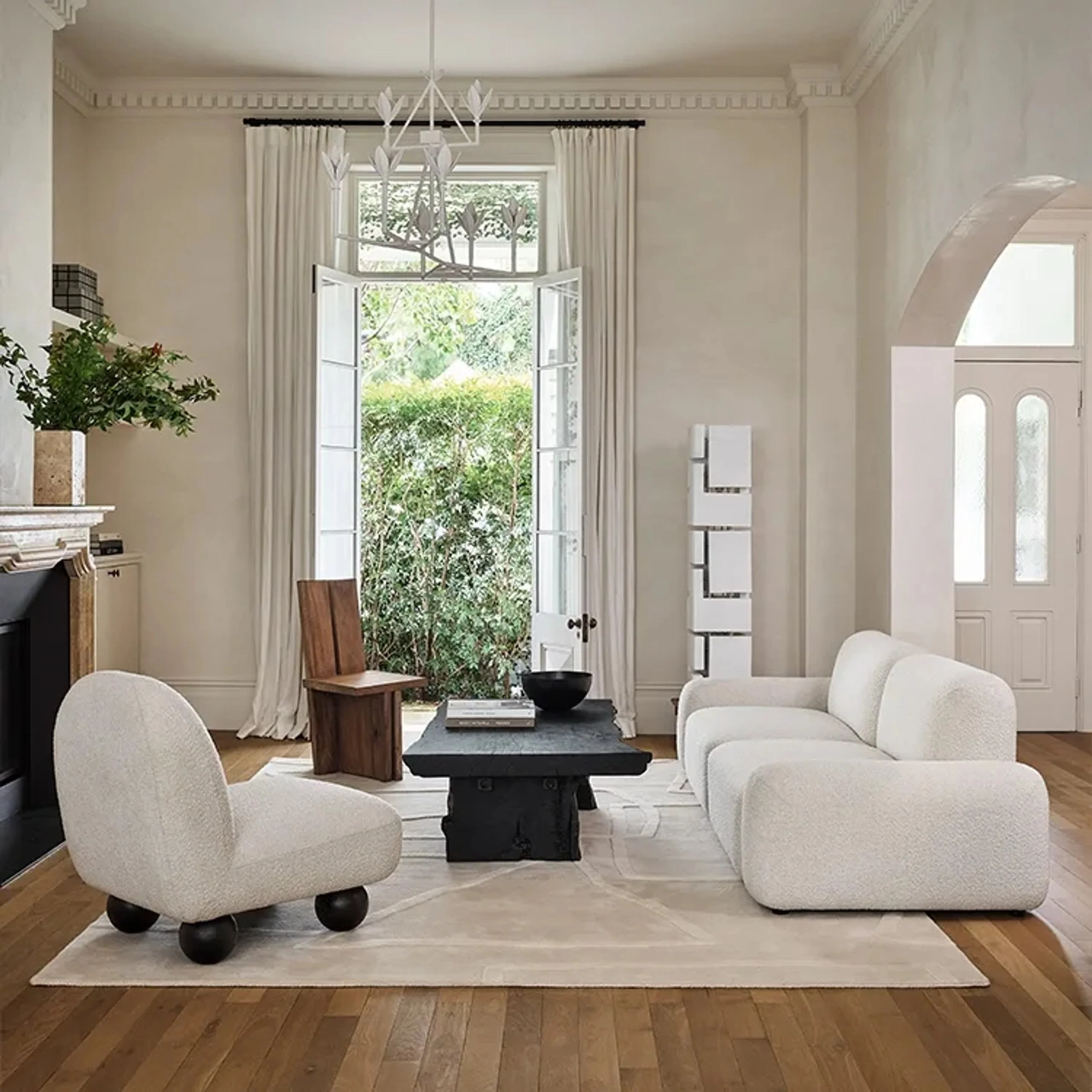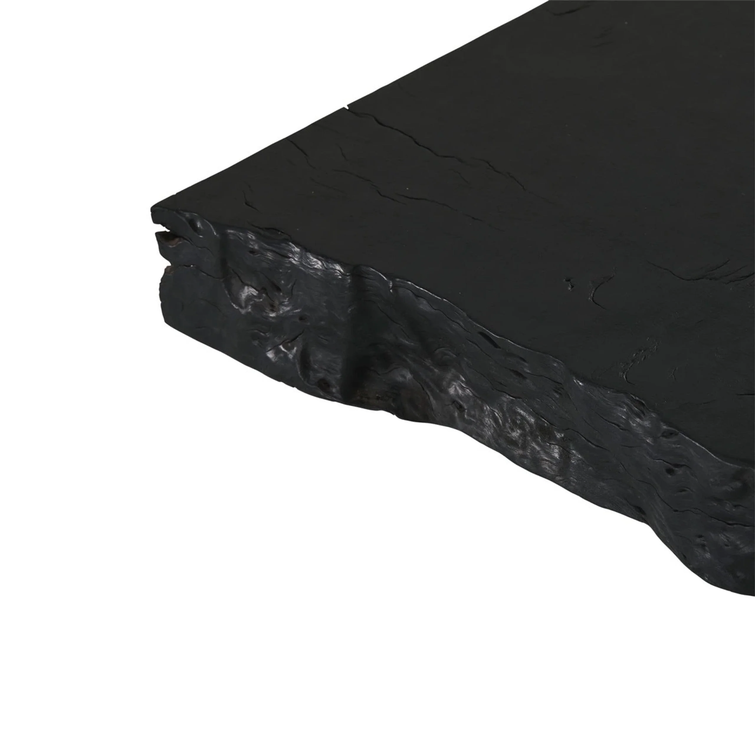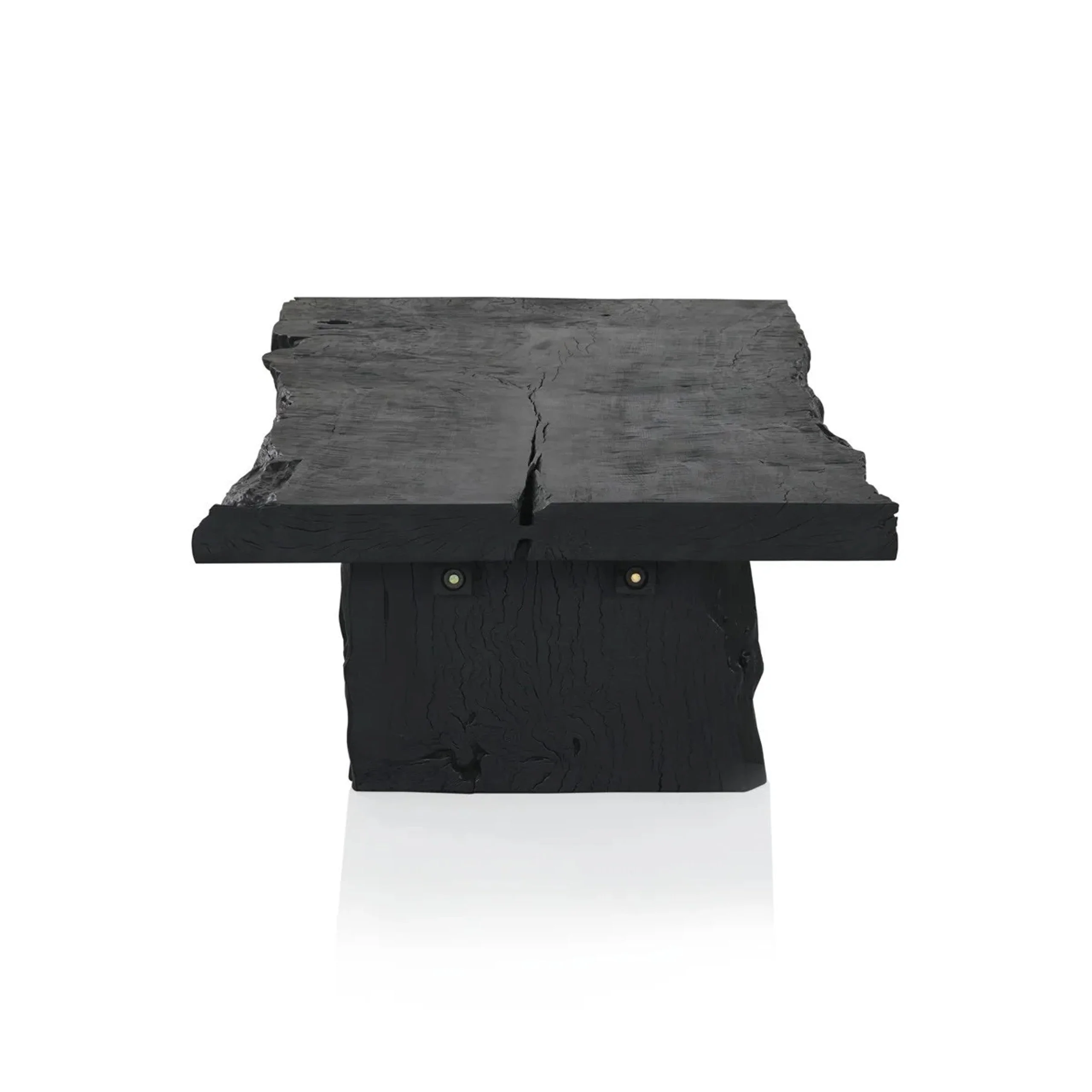 A statement piece for the modern interior, the Nobu Rectangular Coffee Table showcases a bold, organic form crafted from a solid slab of sustainably sourced flower wood. Its striking character is defined by a hand-applied burnt noir finish, which enhances the natural grain and textural richness of the timber.