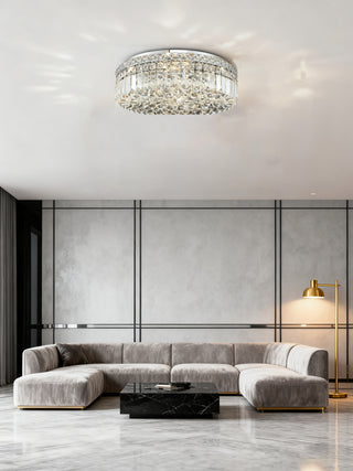 24'' Round Crystal Ceiling Light Empire Flush Mounted Crystal Chandelier