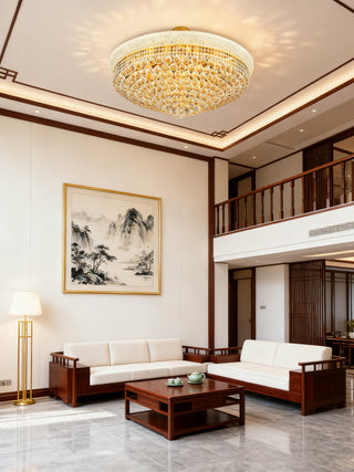 28'' Round Crystal Ceiling Light Empire Flush Mounted Crystal Chandelier