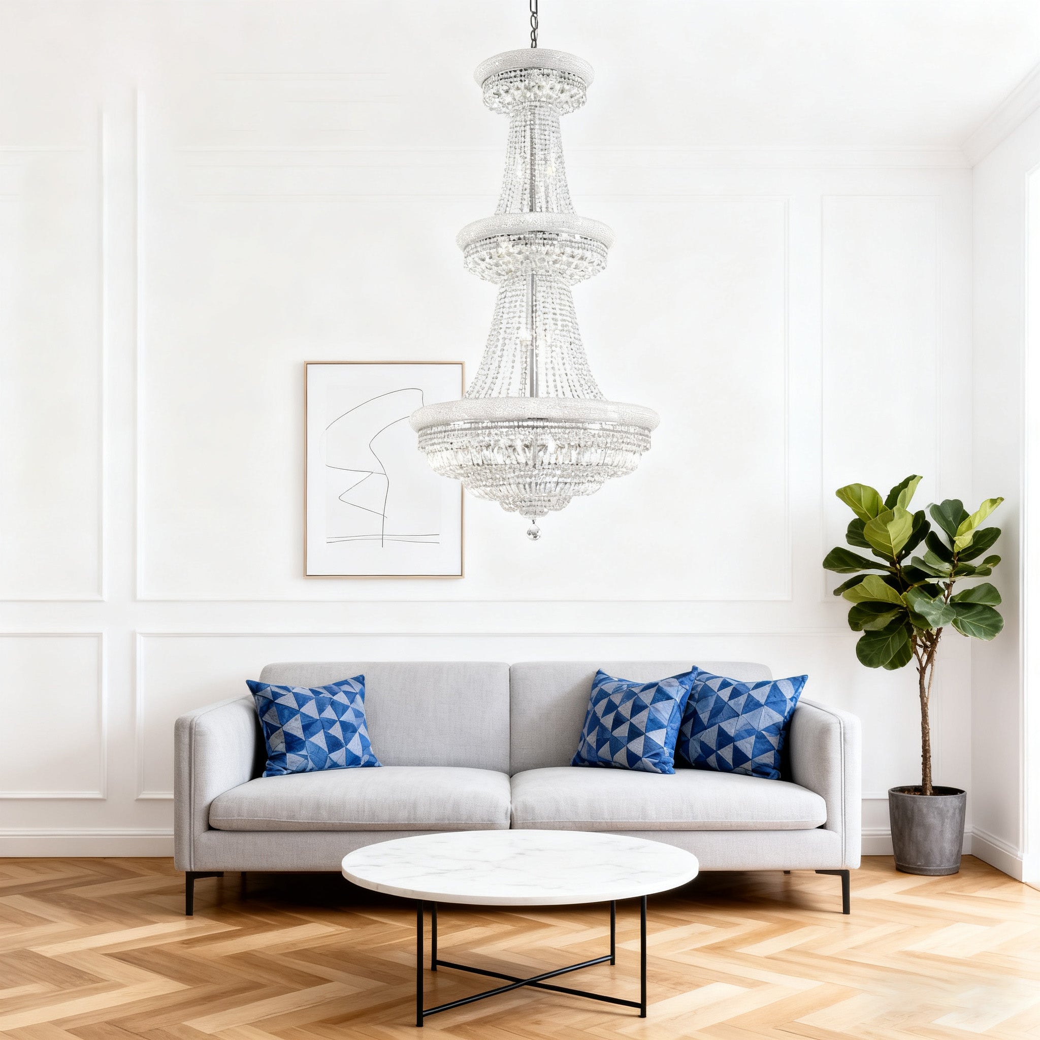 48 Lights Baccarat Inspired Crystal Chandelier 60X72 Inch Big Chandelier for Living Room