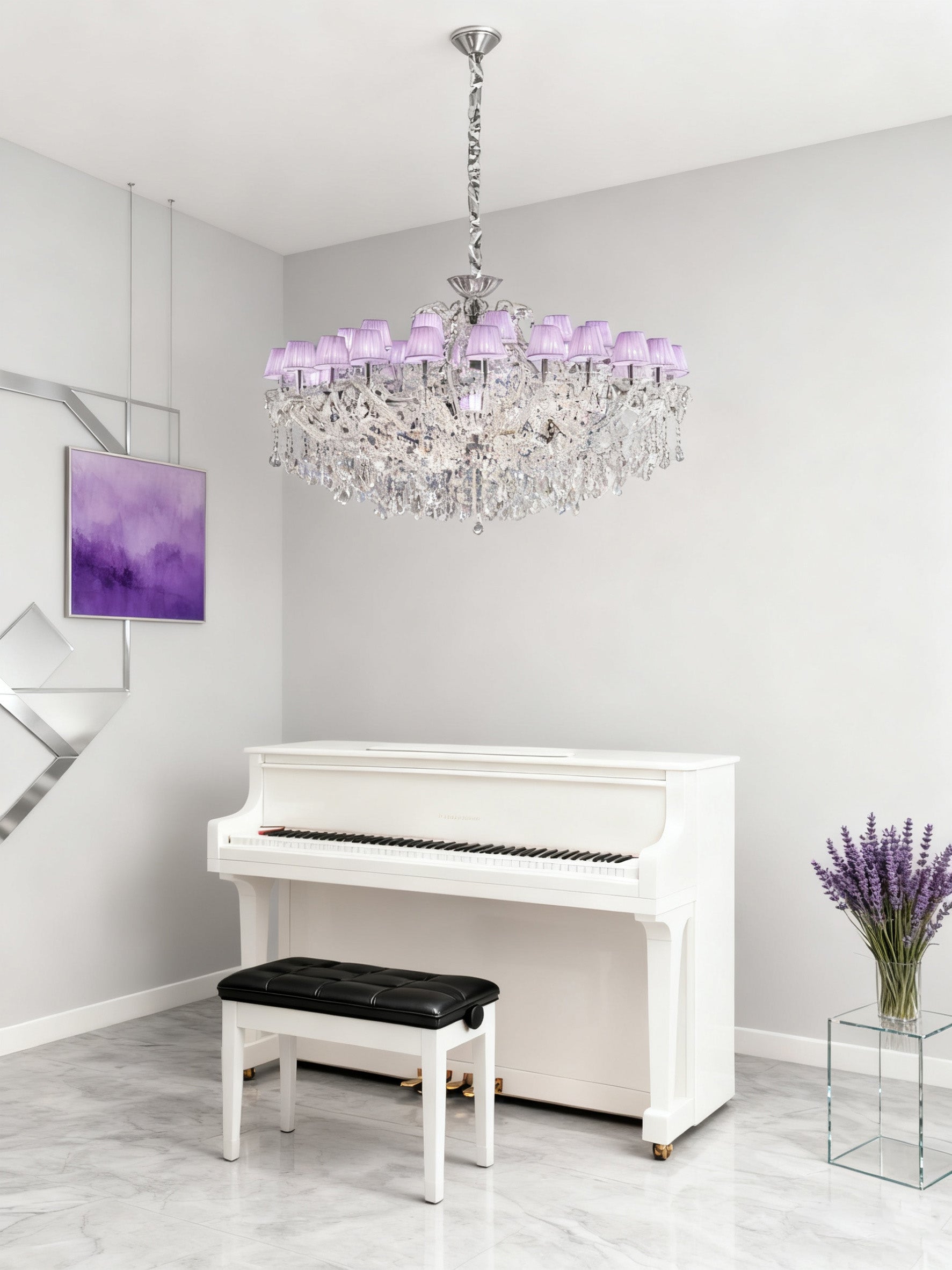 36 Lights Glass Chandelier in Chrome Finish with Purple Shades 65"W 37"H