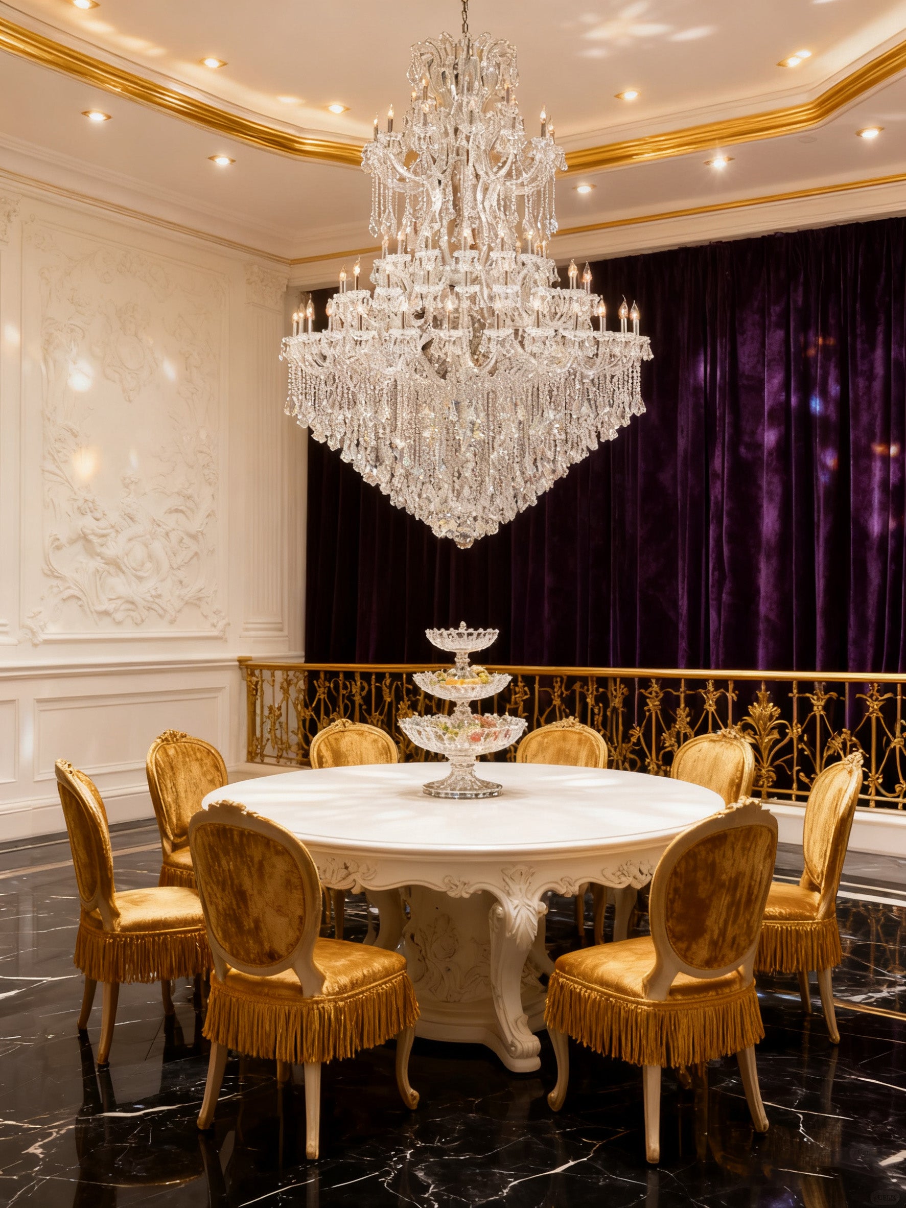This majestic 240cm (94") chandelier features 84 E14 bulbs illuminating cascading crystals and glass on a dual-tone chrome/gold iron frame. Its grand 195cm (77") width creates spectacular light refraction for palatial spaces. The contrasting finishes blend contemporary and classic elegance.