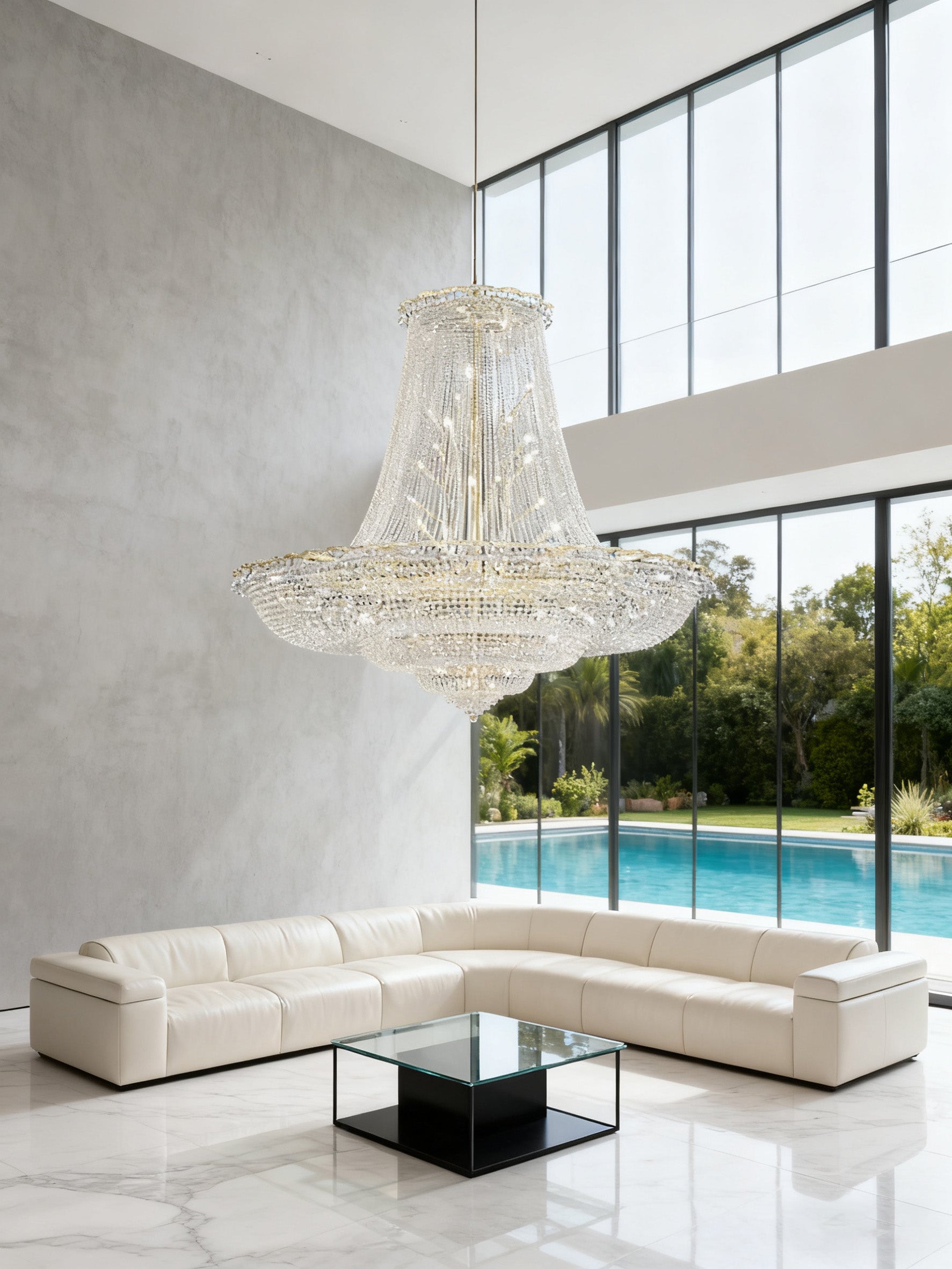 The foyer chandelier is an extraordinary extra wide chandelier, adorned with sparkling crystals. This large crystal chandelier measures an impressive 79'' wide and 69'' high, featuring 64 captivating lights. Its gold finish adds a touch of opulence to its elegant design. Suitable for foyers, living rooms, hallways, banquet halls, ballrooms, lobbies, and entrances, this chandelier creates a mesmerizing display of light, casting a radiant glow and enhancing the ambiance of any space with its grandeur and beauty.
