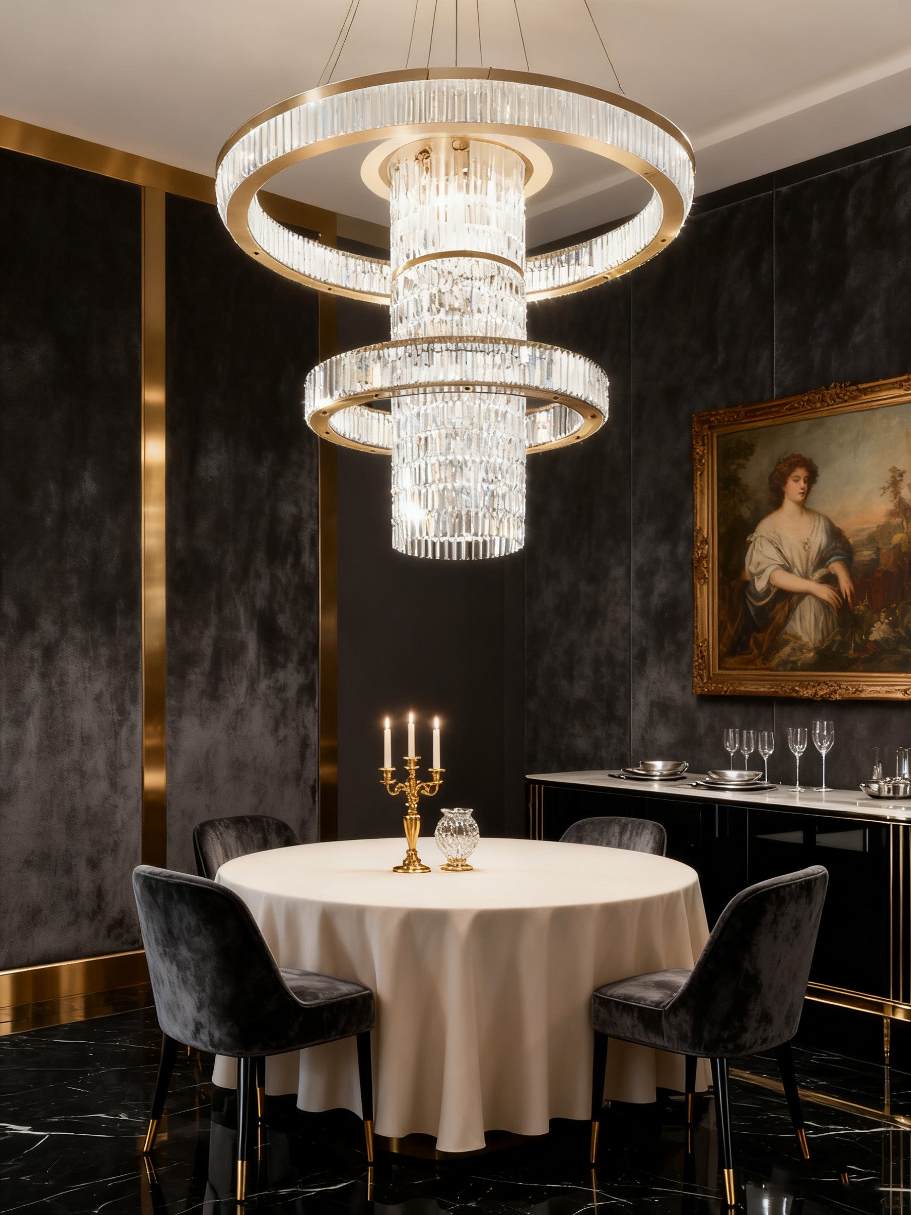 This stunning chandelier combines modern sophistication with timeless brilliance, featuring a balanced 170cm (67") height and 140cm (55") width. The sleek chrome-finished metal frame creates a striking contemporary aesthetic, while 48 precisely placed lights illuminate cascading crystal elements for dazzling light refraction.