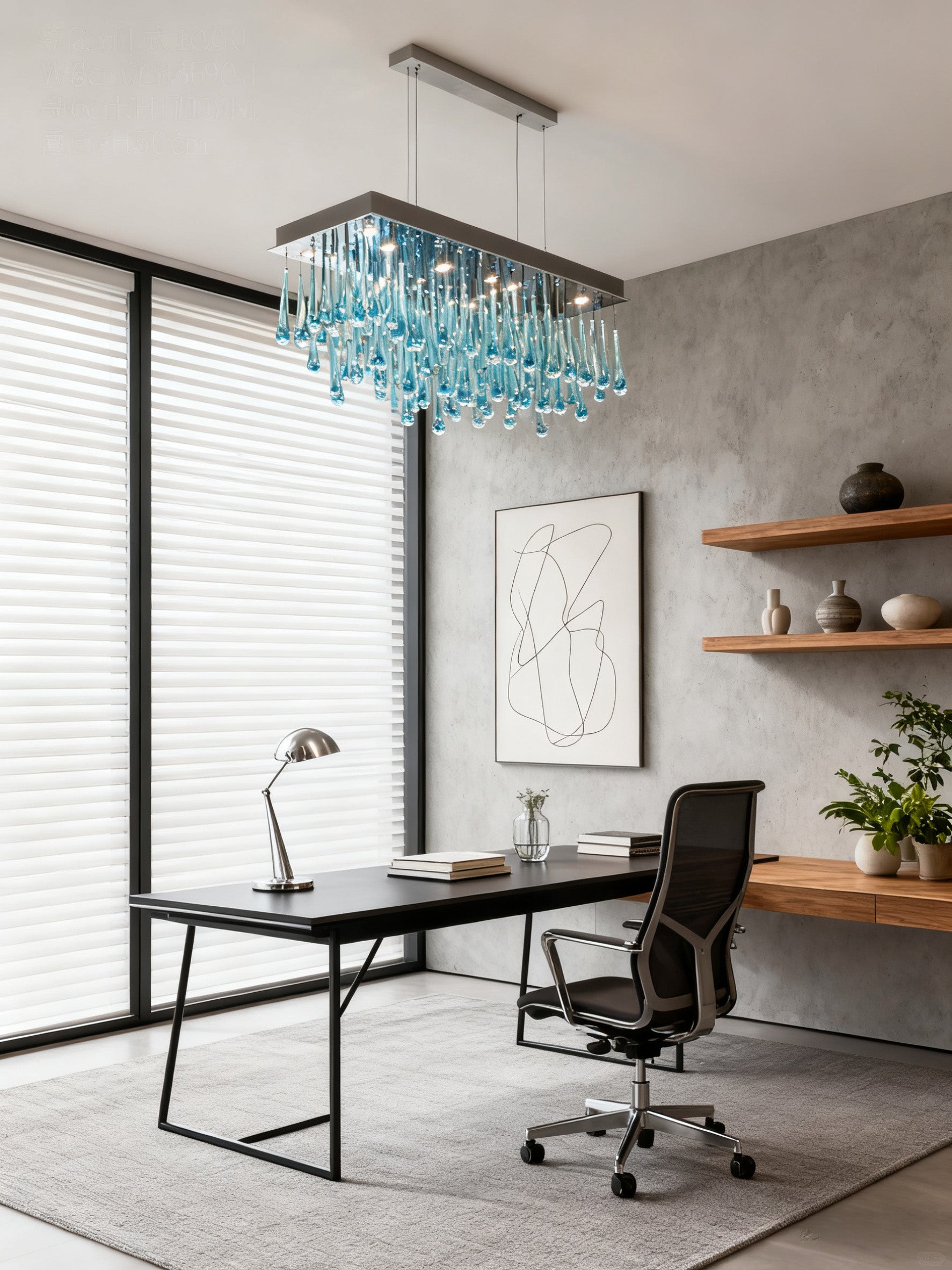 Rectangle Rainfall Blue Murano Glass Chandelier for Dining Room 18"W 24"H