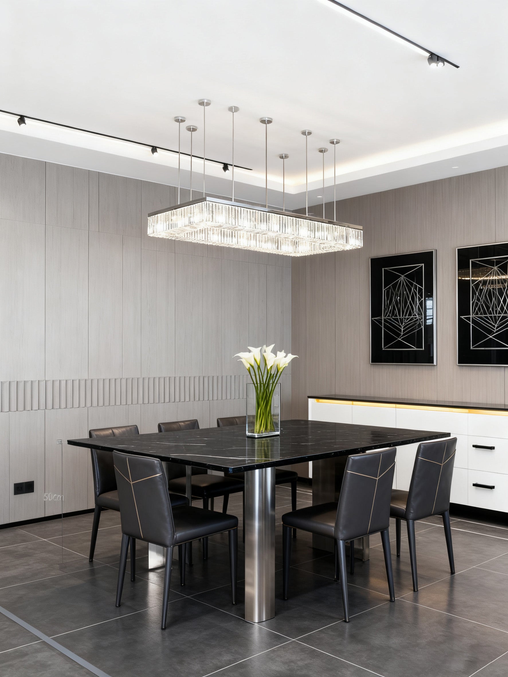 The modern rectangle chandelier is a large and customizable crystal lighting fixture that adds a touch of elegance to any space. With its sleek design and sparkling crystals, it creates a captivating visual display. The size of the chandelier can be tailored to fit your desired space perfectly, making it an ideal choice for dining rooms, living rooms, or banquet halls. Illuminate your space with this exquisite modern chandelier.