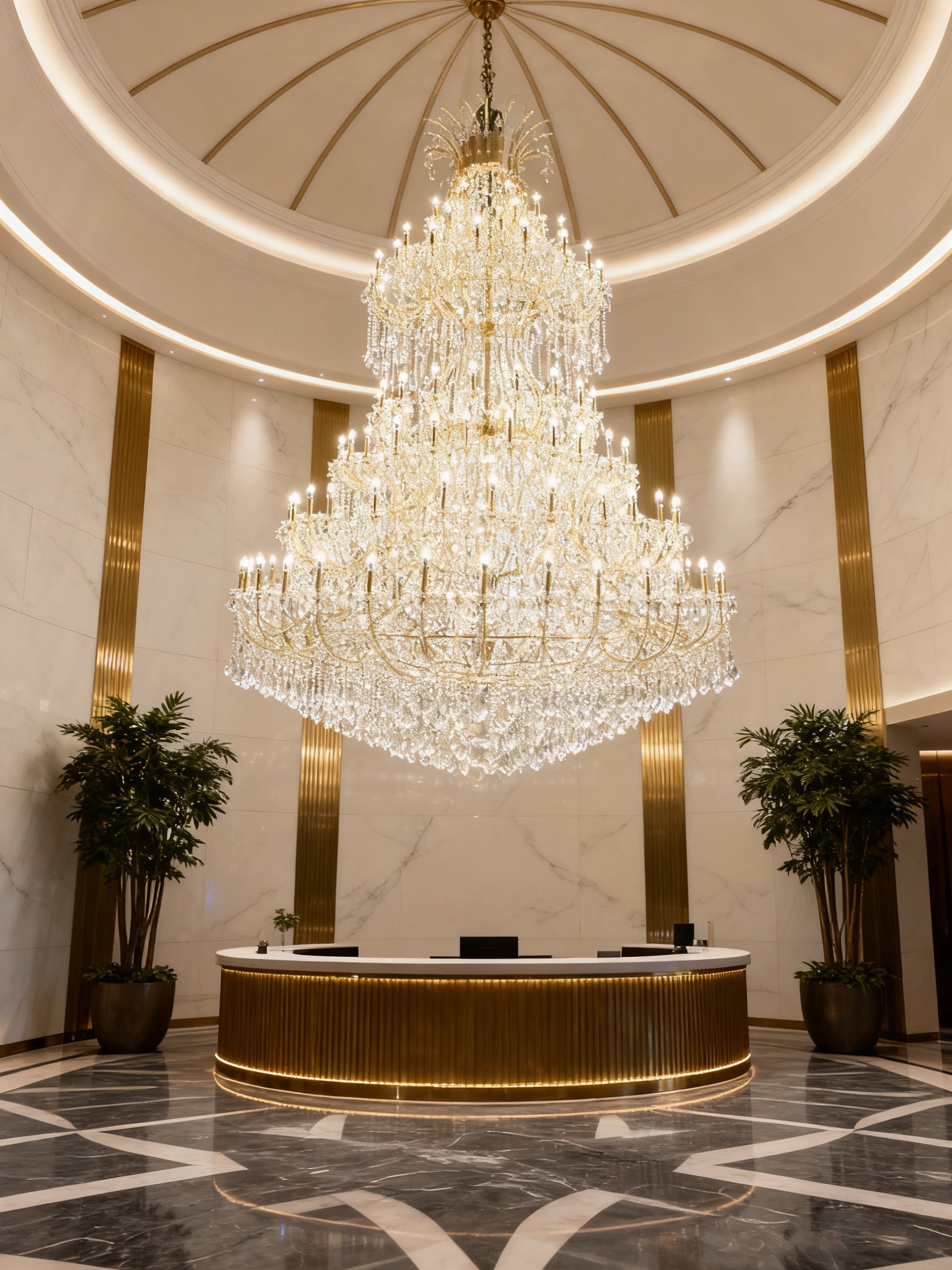 The fixture features 144 E14 bulb sockets, offering exceptional illumination flexibility to create anything from intimate ambiance to brilliant radiance. Ideal for palatial residences, luxury hotels, or prestigious event spaces, its timeless design blends classical opulence with modern functionality.