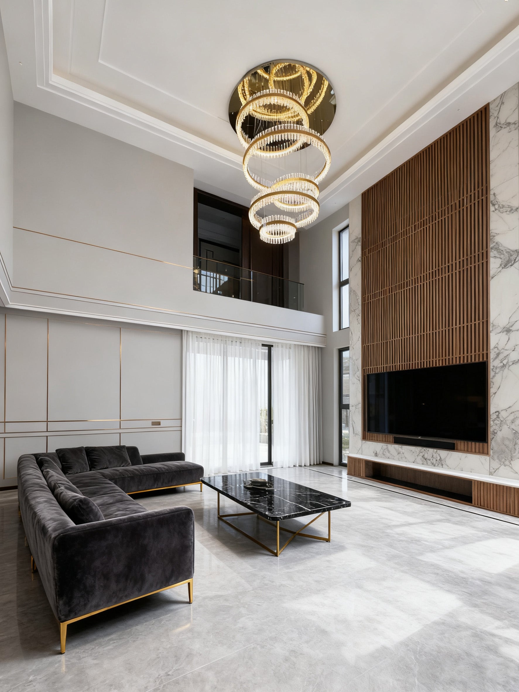 This grand 160cm (63") diameter chandelier makes a luxurious statement with its golden metal frame and elegant glass elements. Energy-efficient LED lighting provides brilliant illumination while creating dazzling light reflections. The warm golden finish adds opulent sophistication to any space. Perfect for high-end residences or hospitality settings, this contemporary fixture blends modern technology with timeless glamour. The expansive design delivers both dramatic visual impact and ambient lighting for sophisticated interiors.