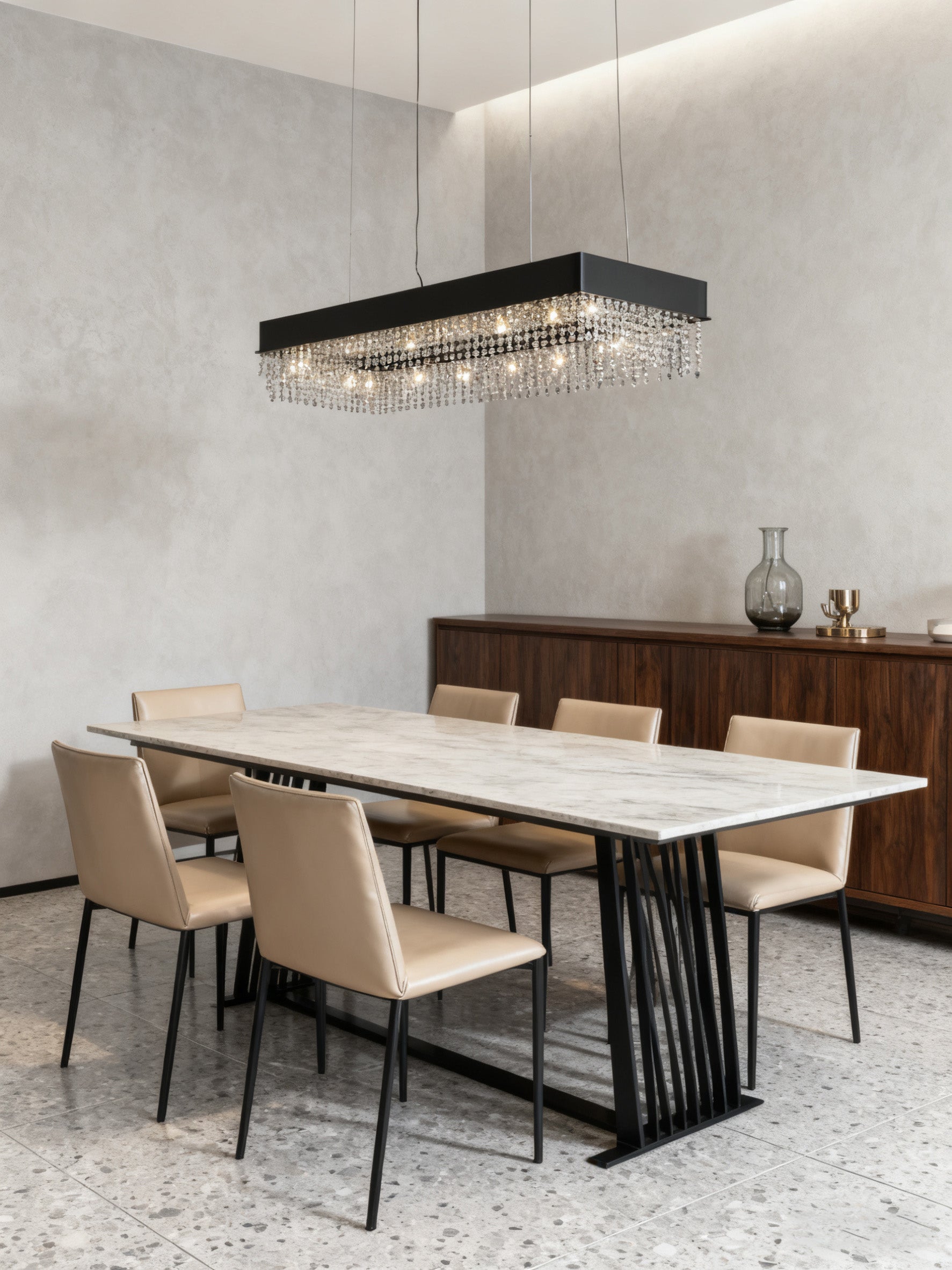 This elegant chandelier combines modern design with timeless sophistication, perfect for enhancing any living space. Crafted from high-quality metal and crystal, it features a sleek chrome finish that adds a touch of luxury. With dimensions of 52cm (20") in width, 151cm (59") in length, and 16.5cm (6") in height, it makes a striking statement while maintaining a refined aesthetic. The fixture includes 16 G9 bulbs, providing bright and warm illumination ideal for dining rooms or entryways. Its intricate crystal detailing reflects light beautifully, creating a dazzling effect. Durable and stylish, this chandelier is a stunning centerpiece that elevates any interior with its blend of contemporary flair and classic charm.