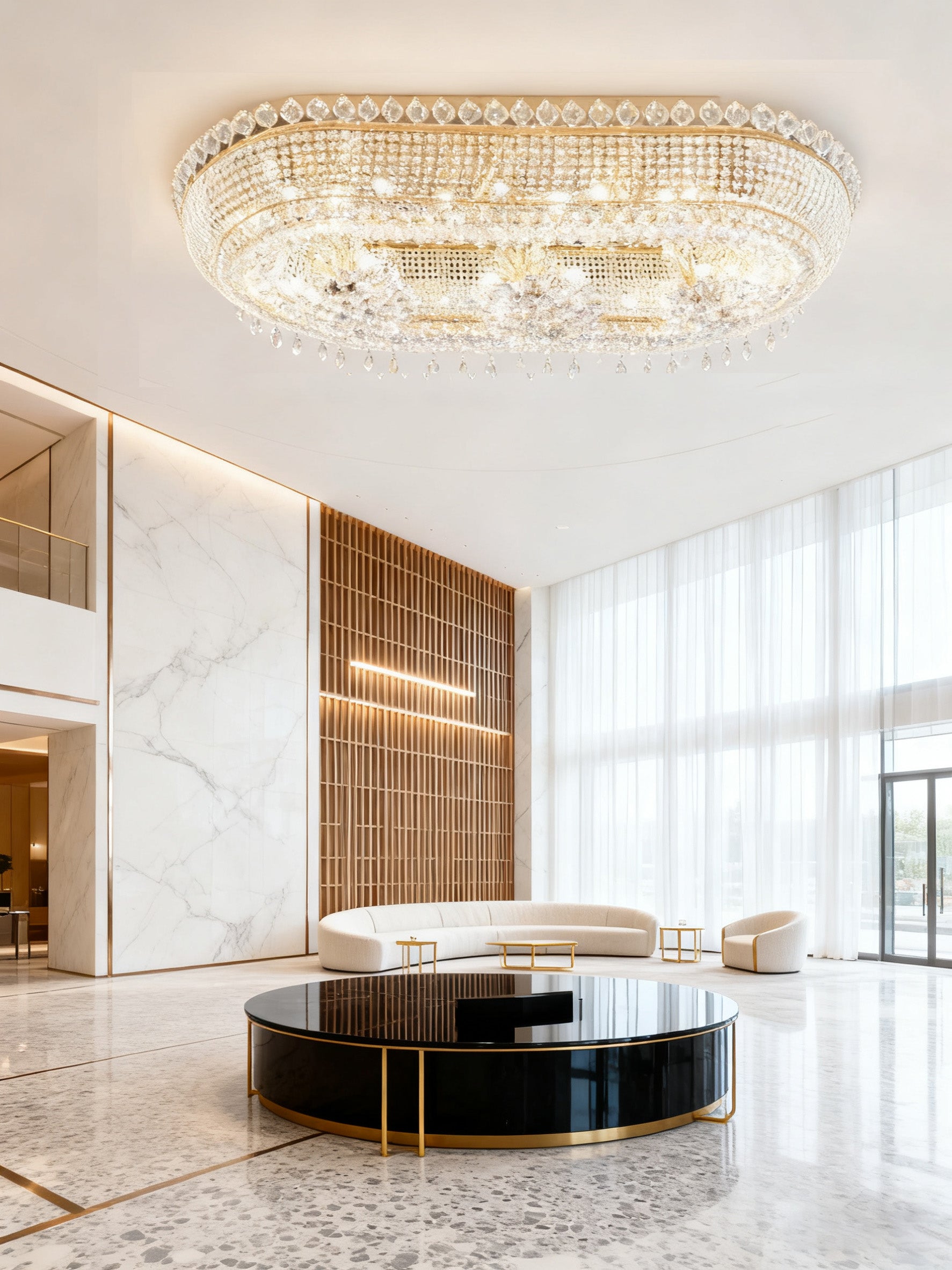 I wanted our gallery’s lounge to feel like a chic pause between art viewing—this chandelier does that. The oval shape feels modern but classic, and the gold + crystal combo vibes with our contemporary art collection. Visitors always comment, ‘This light is almost as artful as the paintings.’ The 55 lights are bright enough for people to chat over coffee but not harsh, so nobody’s squinting. Plus, it’s low-profile height-wise (18 inches), so it doesn’t compete with the artwork on the walls. Total win for creating a fancy yet relaxed spot.
