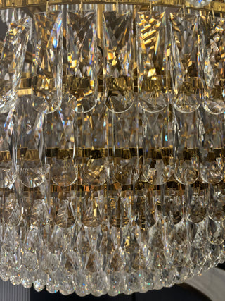 Large chandeliers, measuring over 40 inches in size, are stunning fixtures that command attention and add a touch of grandeur to any space. With their impressive size, these chandeliers are perfect for spacious areas such as grand ballrooms, hotel lobbies, banquet halls, and high-ceilinged foyers, staircases and dining rooms. They serve as captivating focal points, illuminating the surroundings with their intricate designs and sparkling crystals. These large chandeliers not only provide ample lighting but also enhance the aesthetic appeal of the space, creating a luxurious and elegant atmosphere.