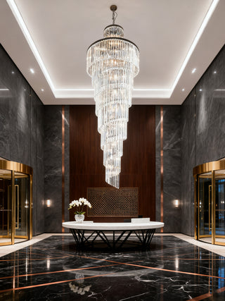 Bespoke Big Modern Crystal Chandelier for High Ceilings 47"W 217"H