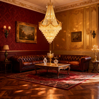 51X65 Inch Large Gold Empire Style Crystal Chandelier for High Ceilings