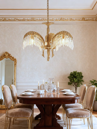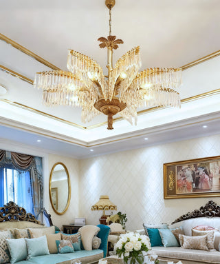 21 Inch Wide 1 Layer Palm Tree Brass and Crystal Chandelier